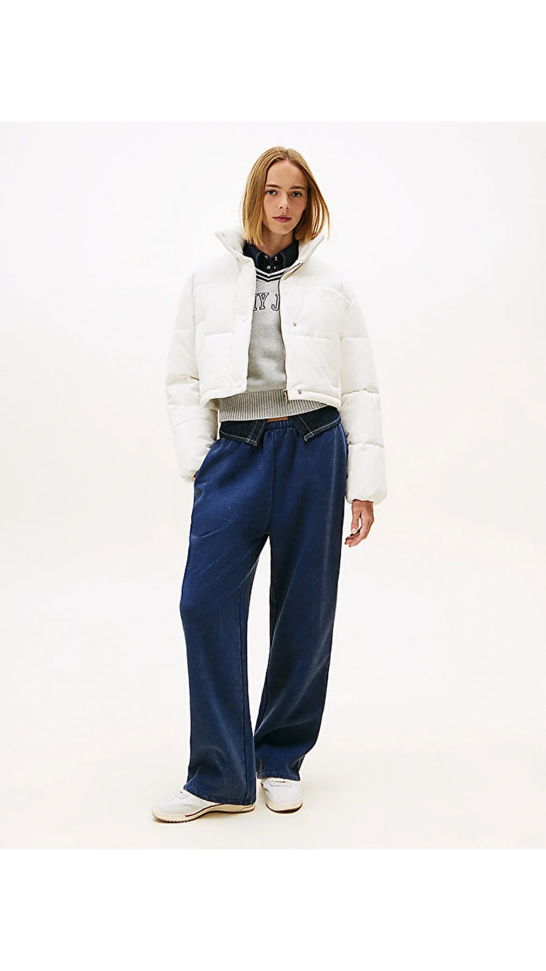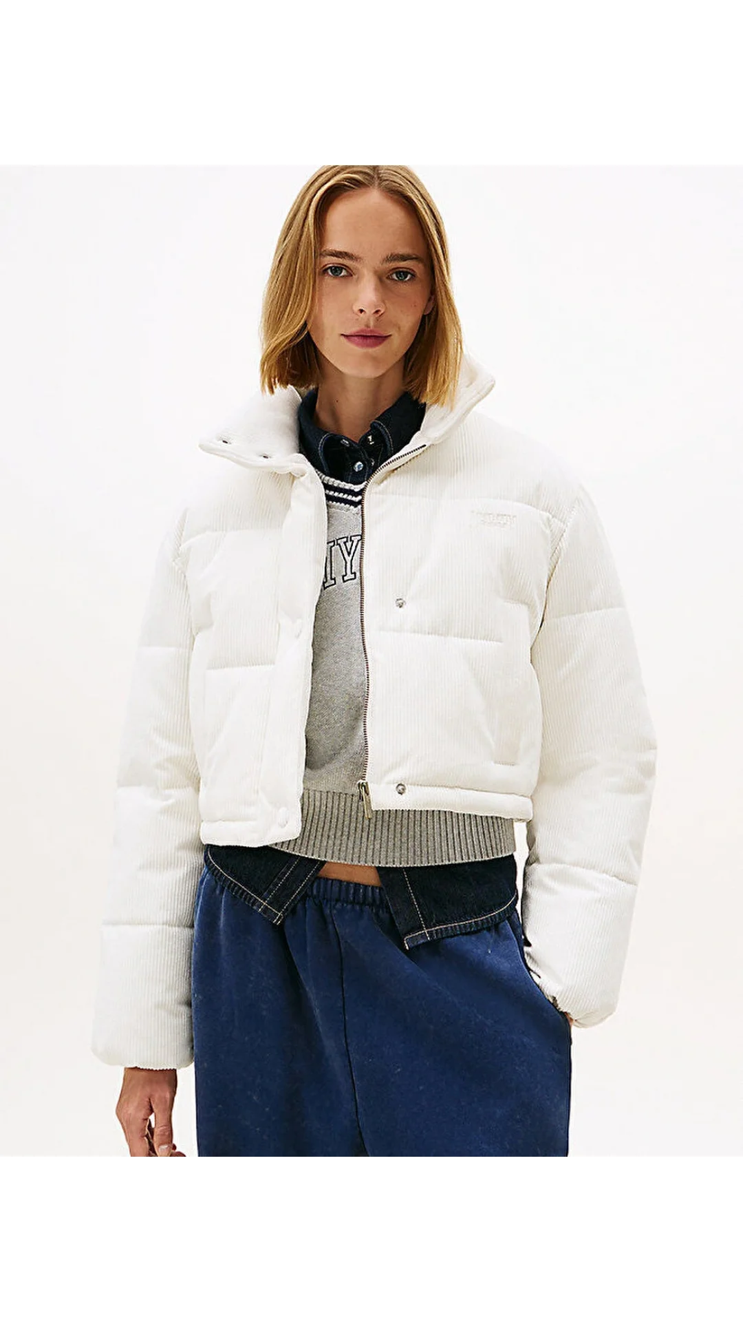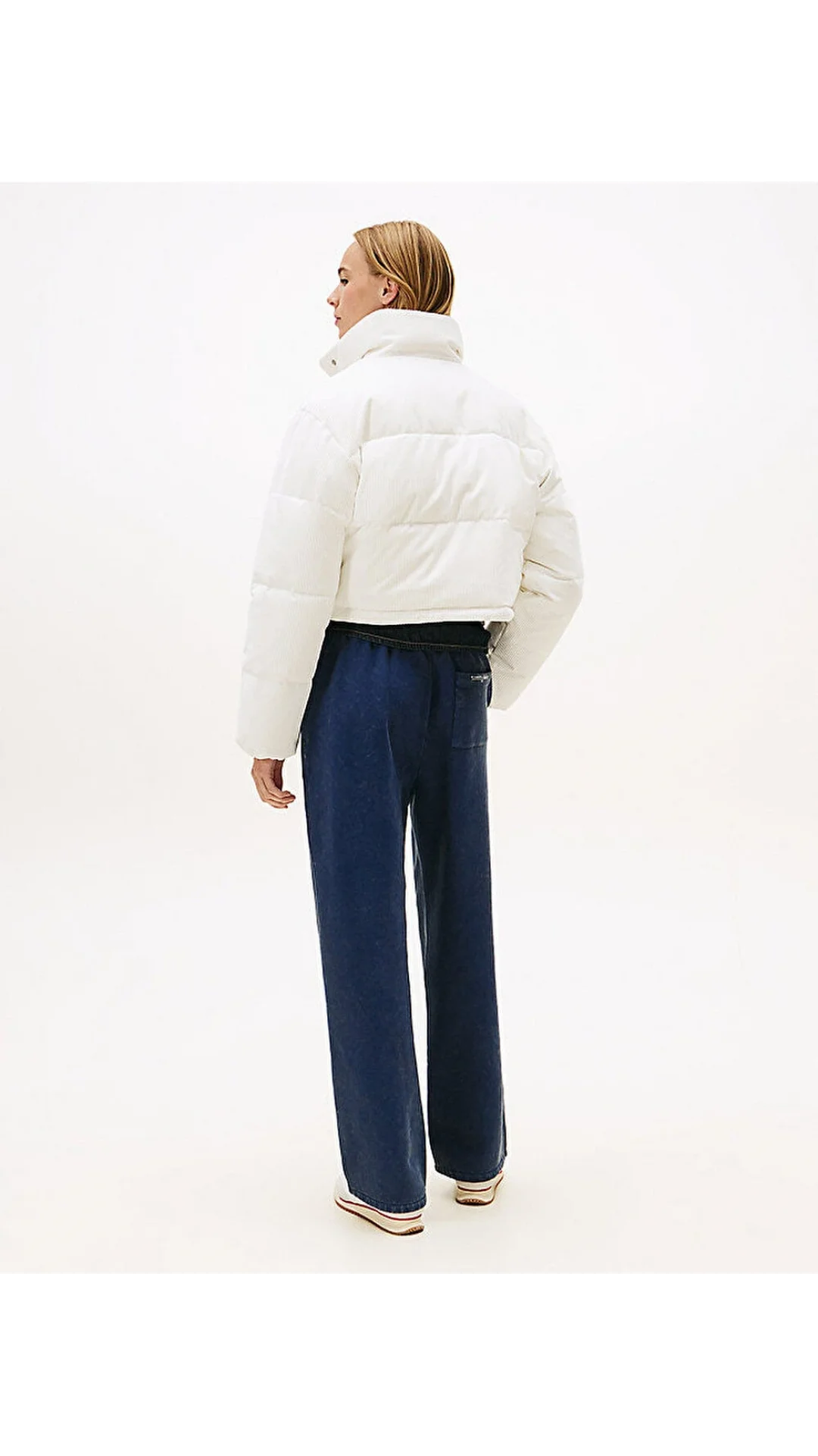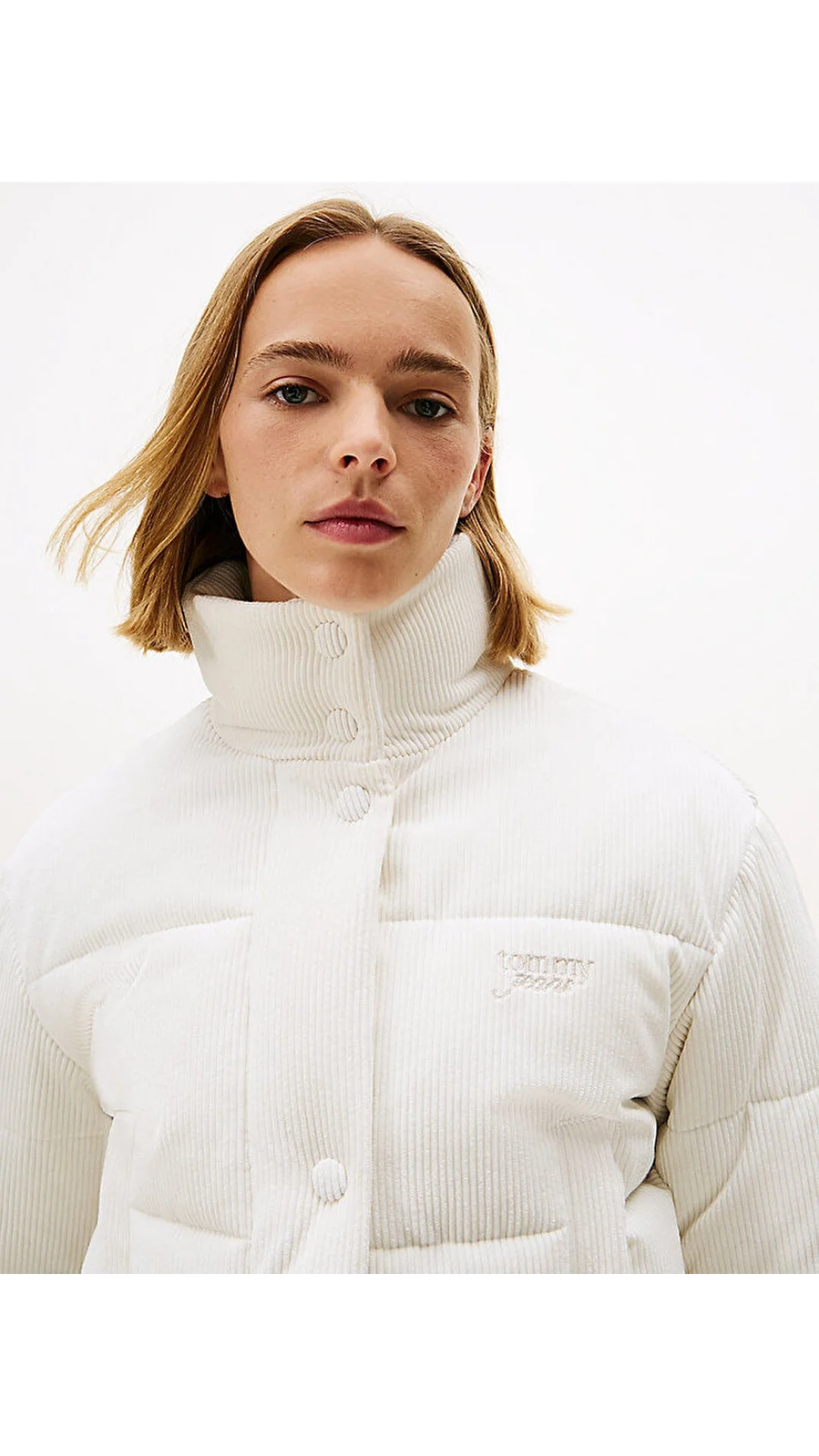 Tommy Hilfiger TJW Kadife Şişme Kadın Beyaz Ceket DW0DW21658YBH