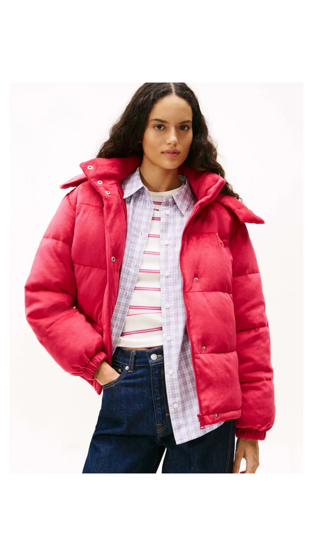 Tommy Hilfiger TJW Kapitone Kadife Şişme Kadın Kırmızı Ceket DW0DW21668XJP