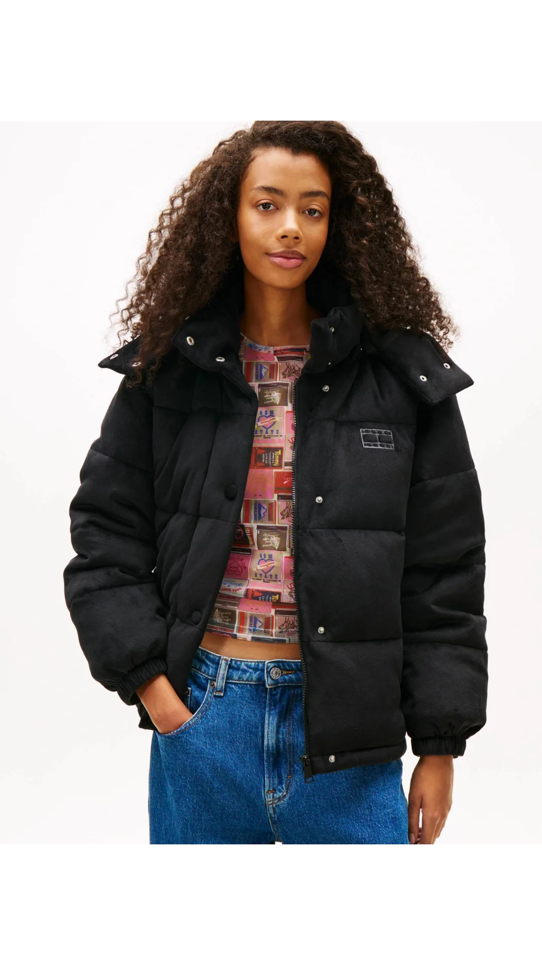 Tommy Hilfiger TJW Kapitone Kadife Şişme Kadın Siyah Ceket DW0DW21668BDS
