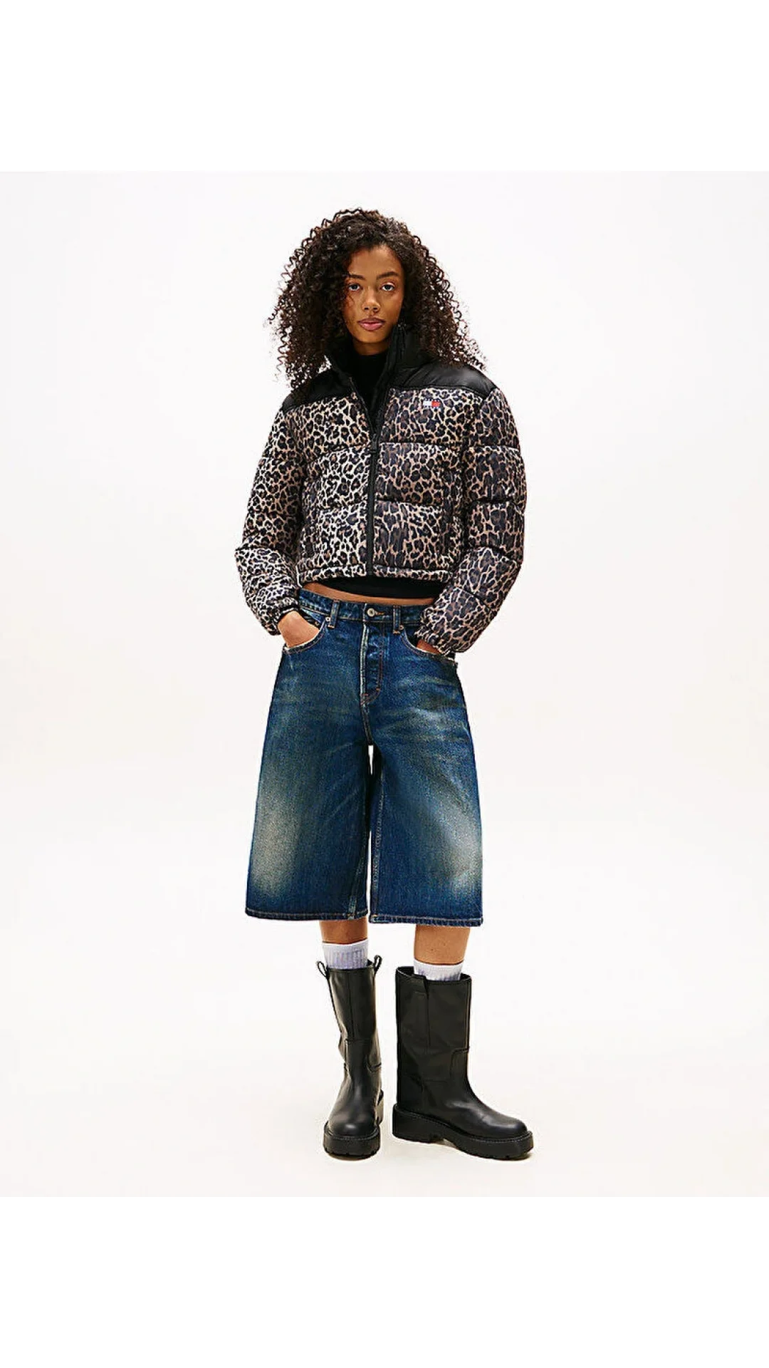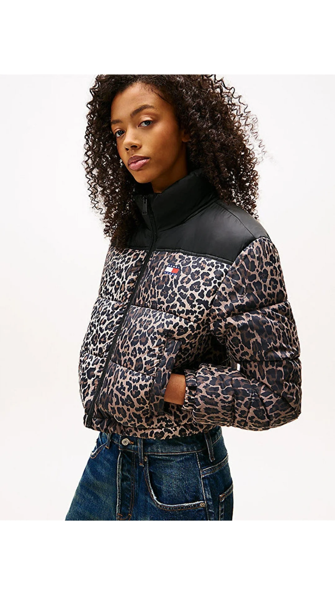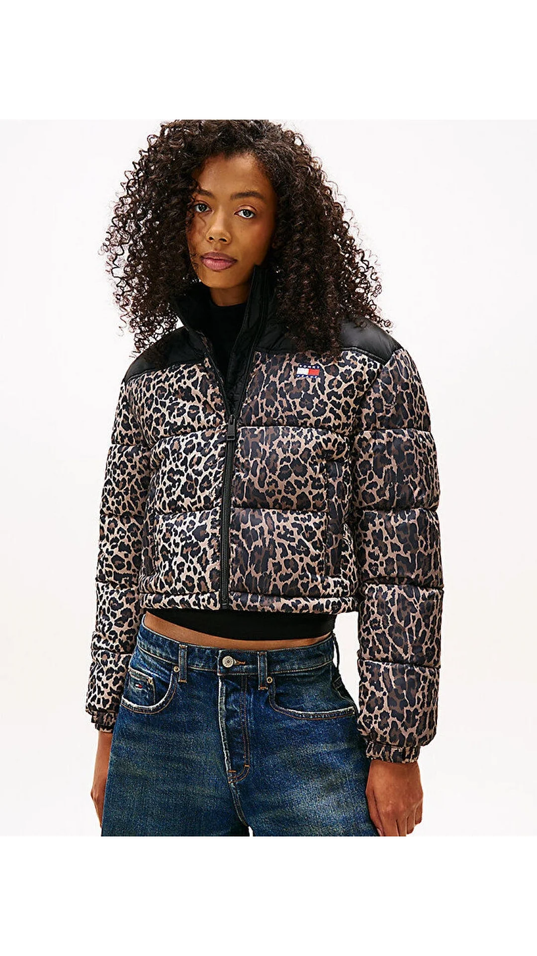Tommy Hilfiger TJW Kısa Leopar Desenli Şişme Kadın Kahverengi Ceket DW0DW219670HD