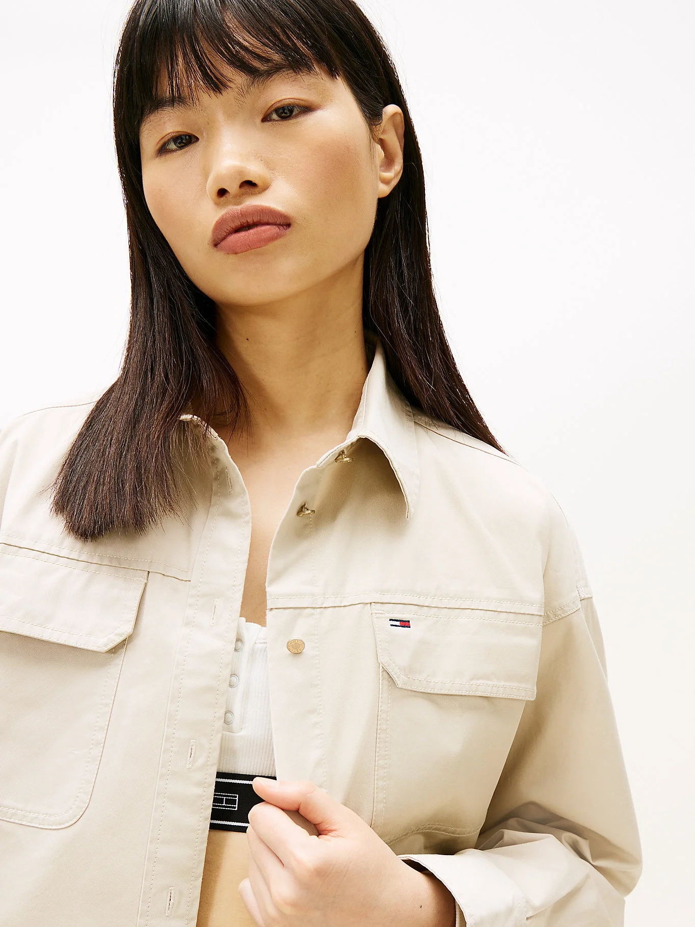 "adi_alt": "Tommy Hilfiger TJW K\u0131sa Utility Kad\u0131n Bej G\u00f6mlek DW0DW22514ABY",