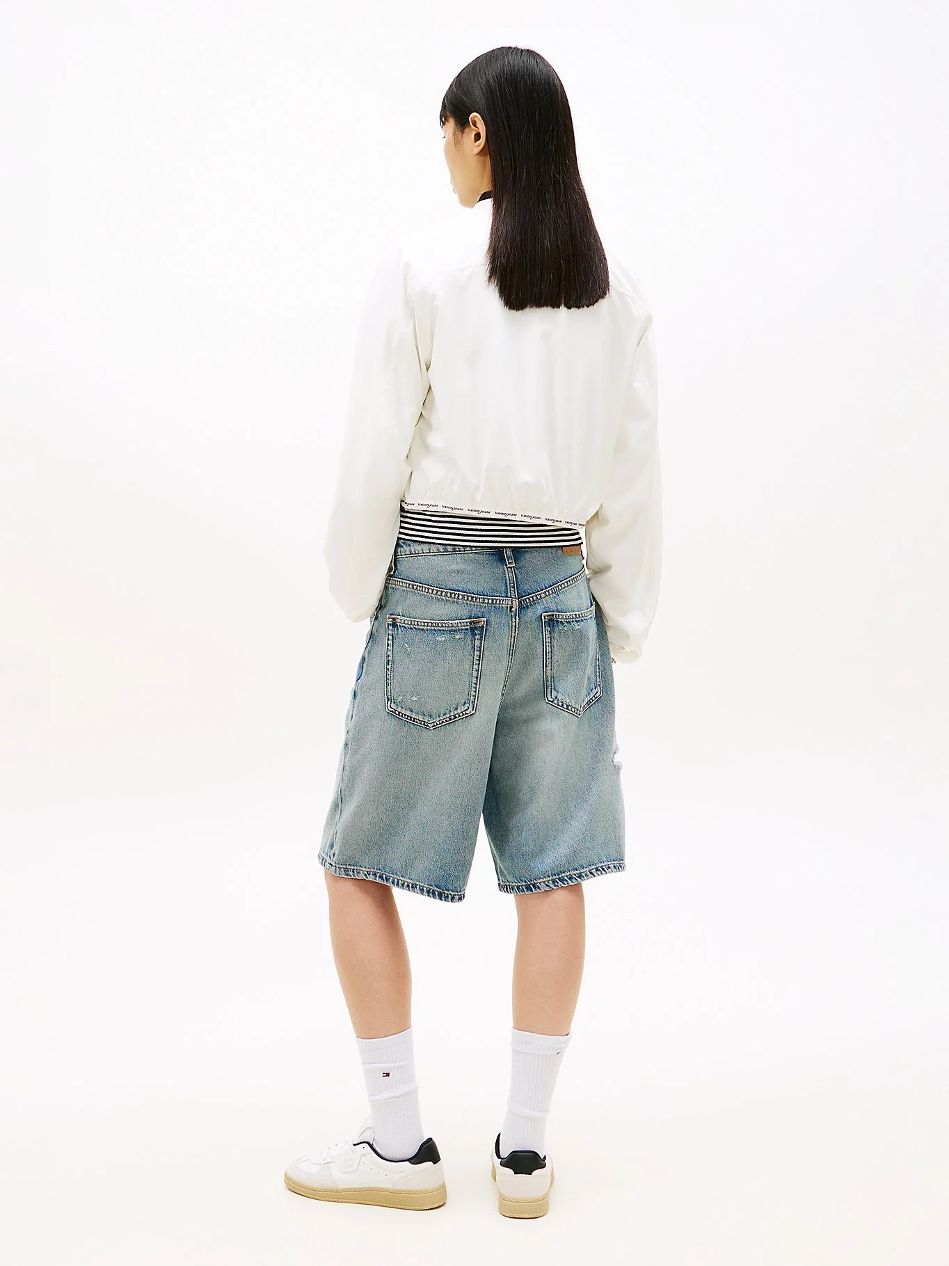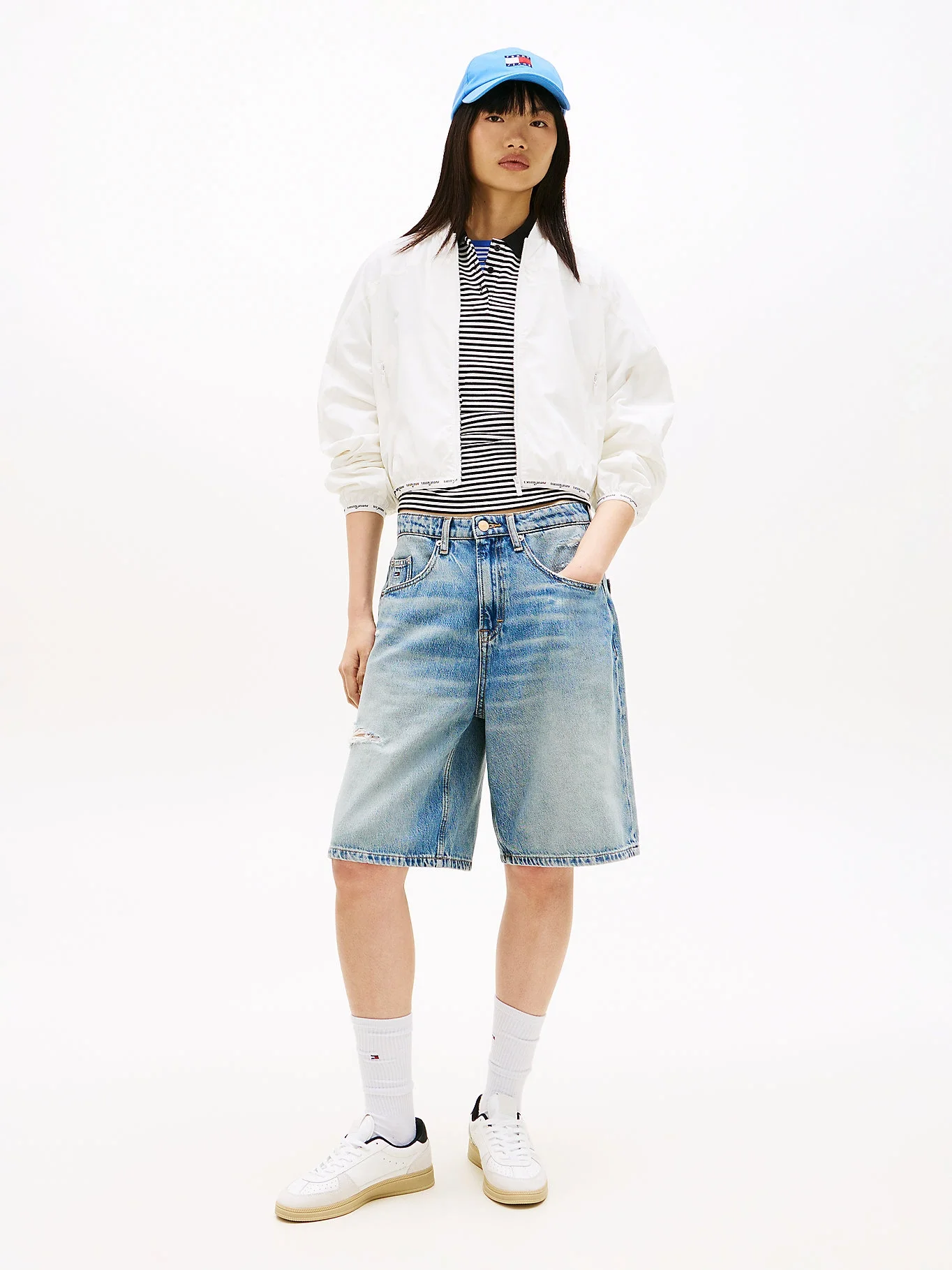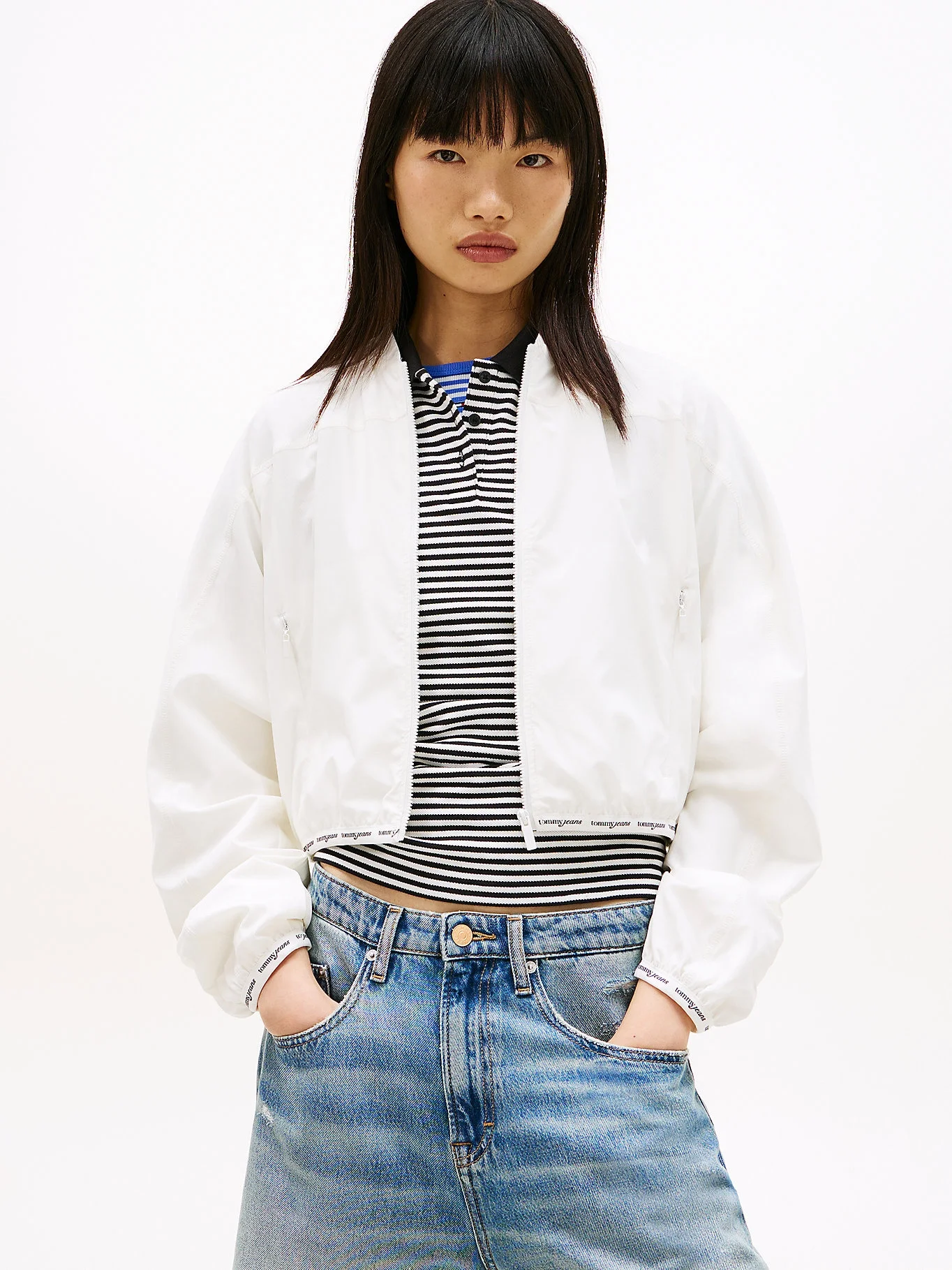 Tommy Hilfiger TJW Logolu Biyeli Bomber Kadın Beyaz Ceket DW0DW22323YBL