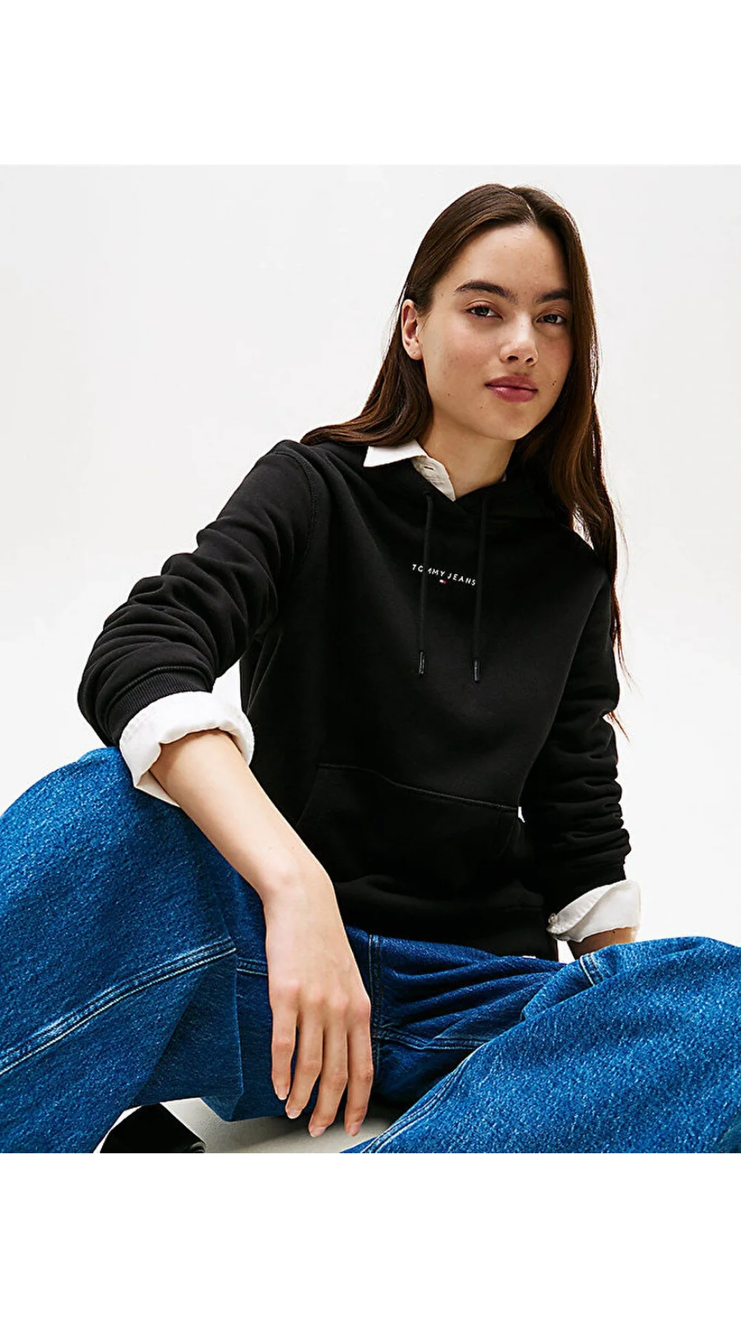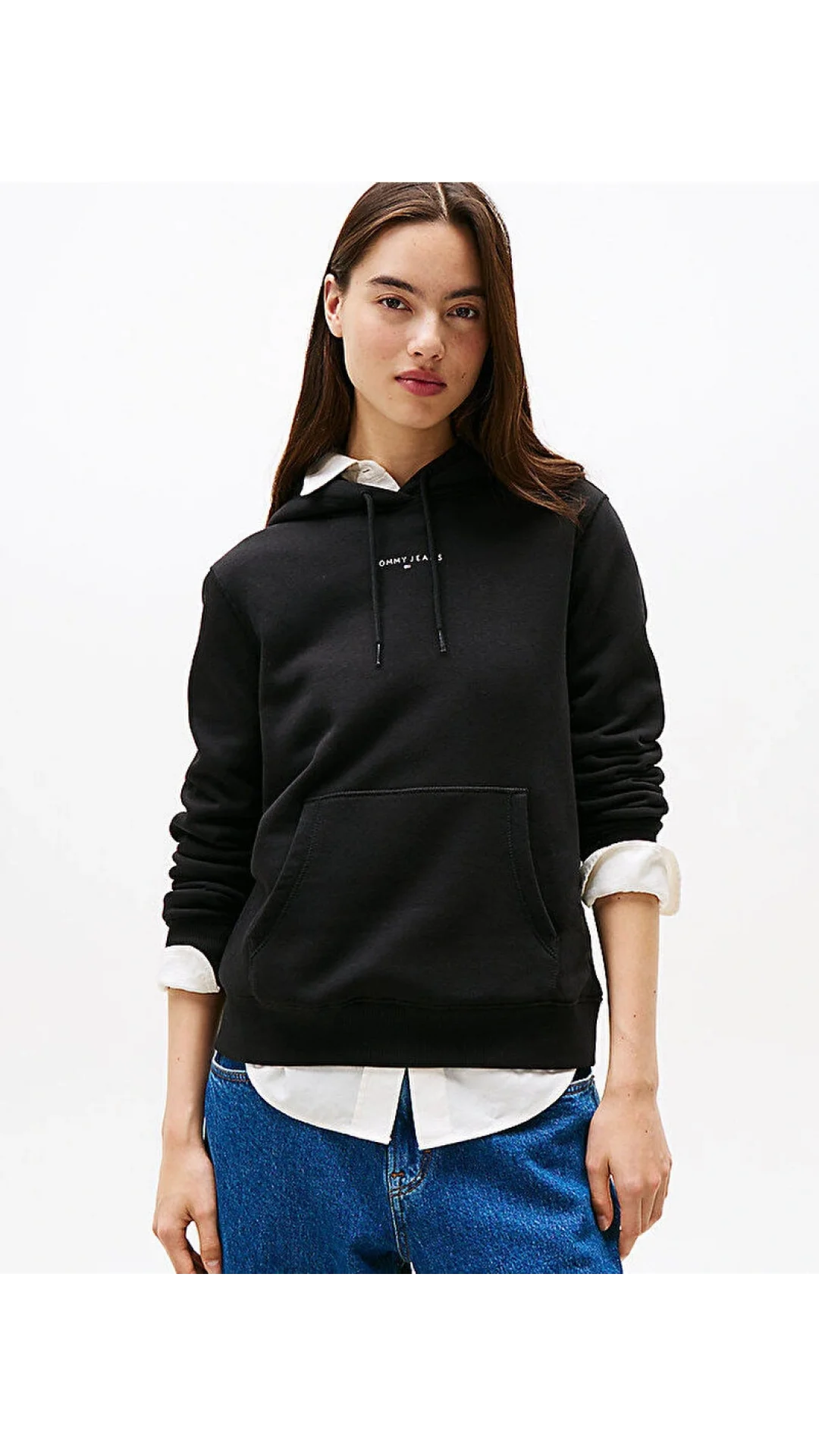 Tommy Hilfiger TJW Normal Kesim Linear Kapüşonlu Kadın Siyah Kazak DW0DW21963BDS