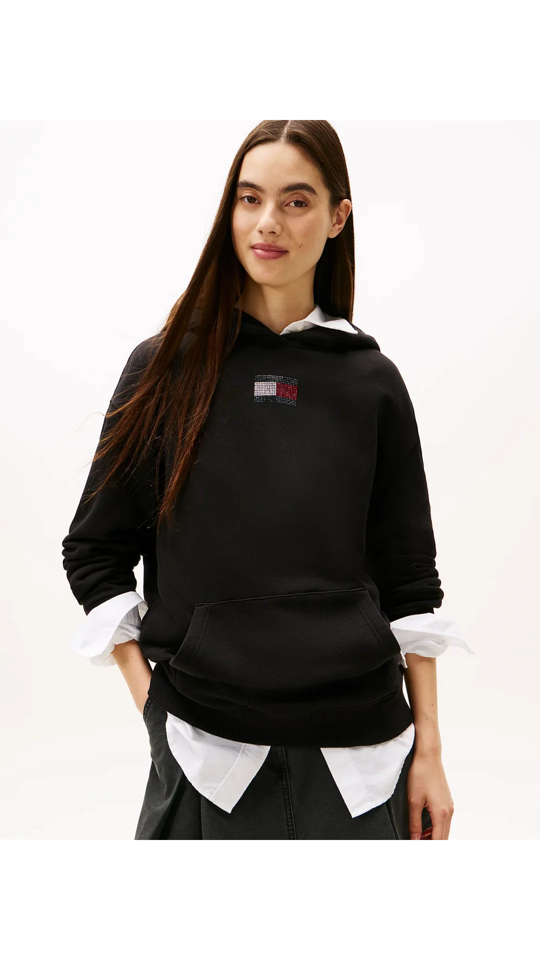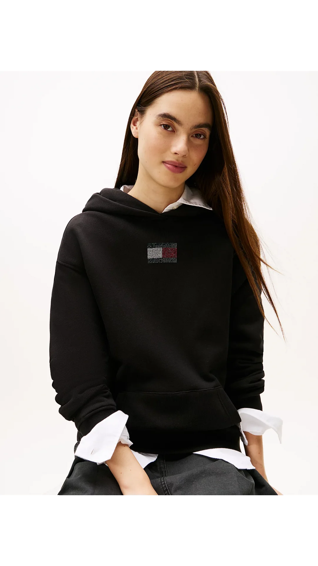 Tommy Hilfiger TJW Rahat Kesim Parti Bayraklı Kadın Siyah Kazak DW0DW21605BDS
