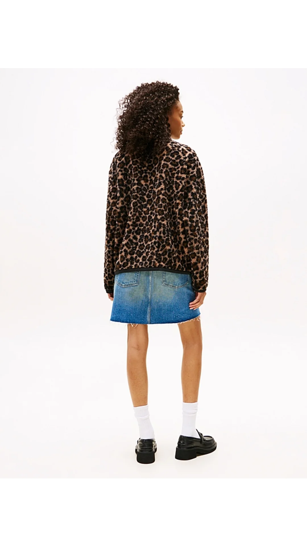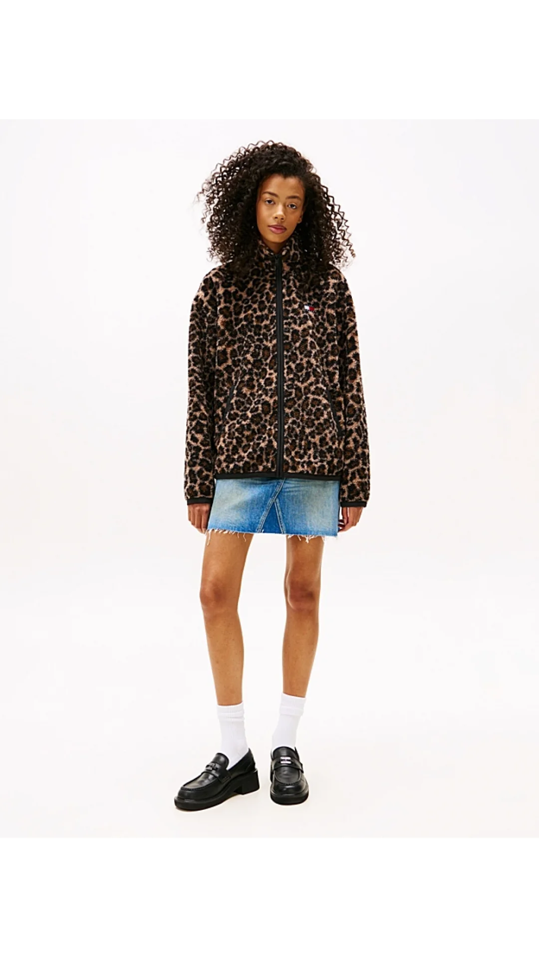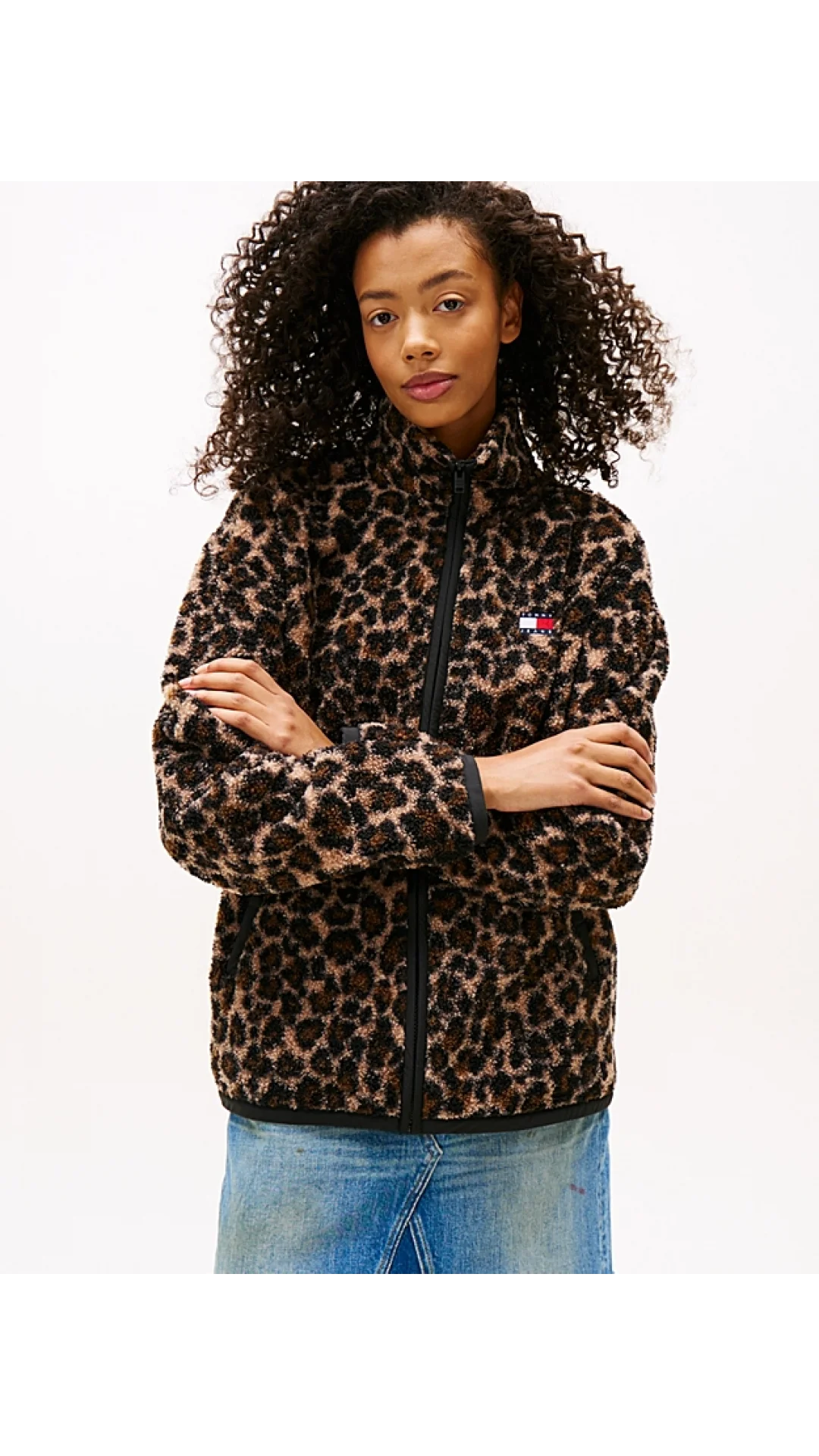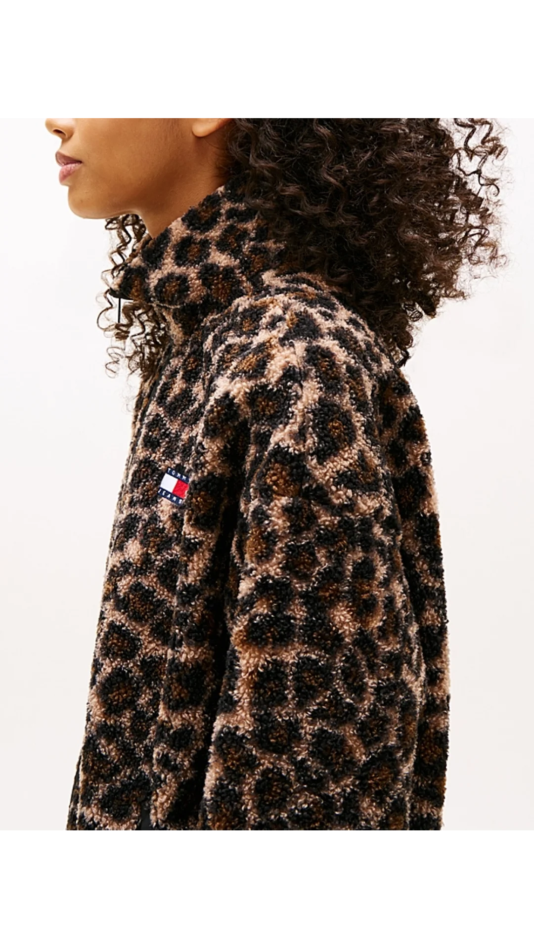 Tommy Hilfiger TJW Tam Fermuarlı Armalı Kürk Dokulu Kadın Kahverengi Sweatshirt DW0DW215960HD