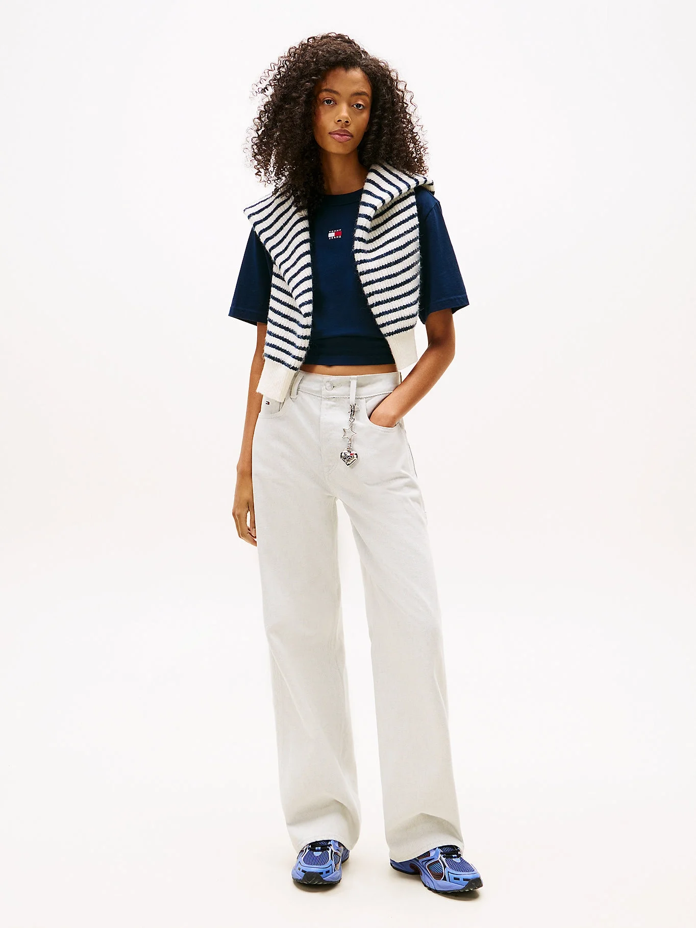 Mavi renkli, bol kesim ve armalı tasarıma sahip T-shirt, rahat ve genç bir stil sunar. Günlük kullanım için ideal, konforlu ve şık bir seçenek.