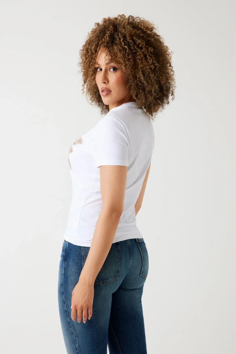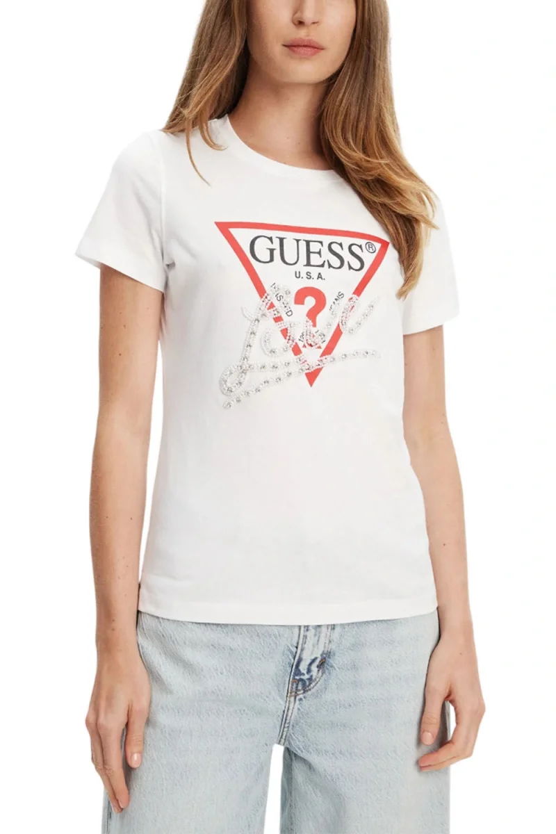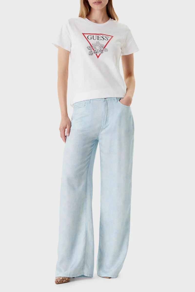 Guess Triangle Kadın Beyaz Slim Fit T-Shirt W5YI08J1314-G011