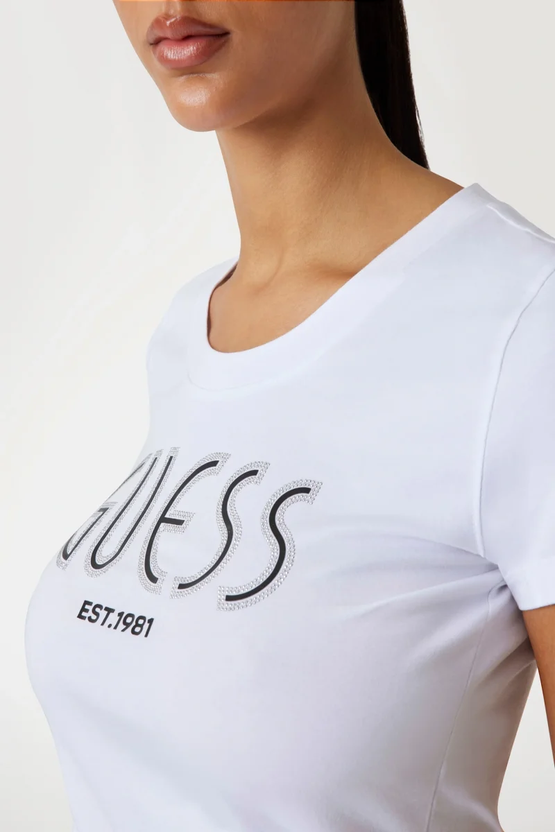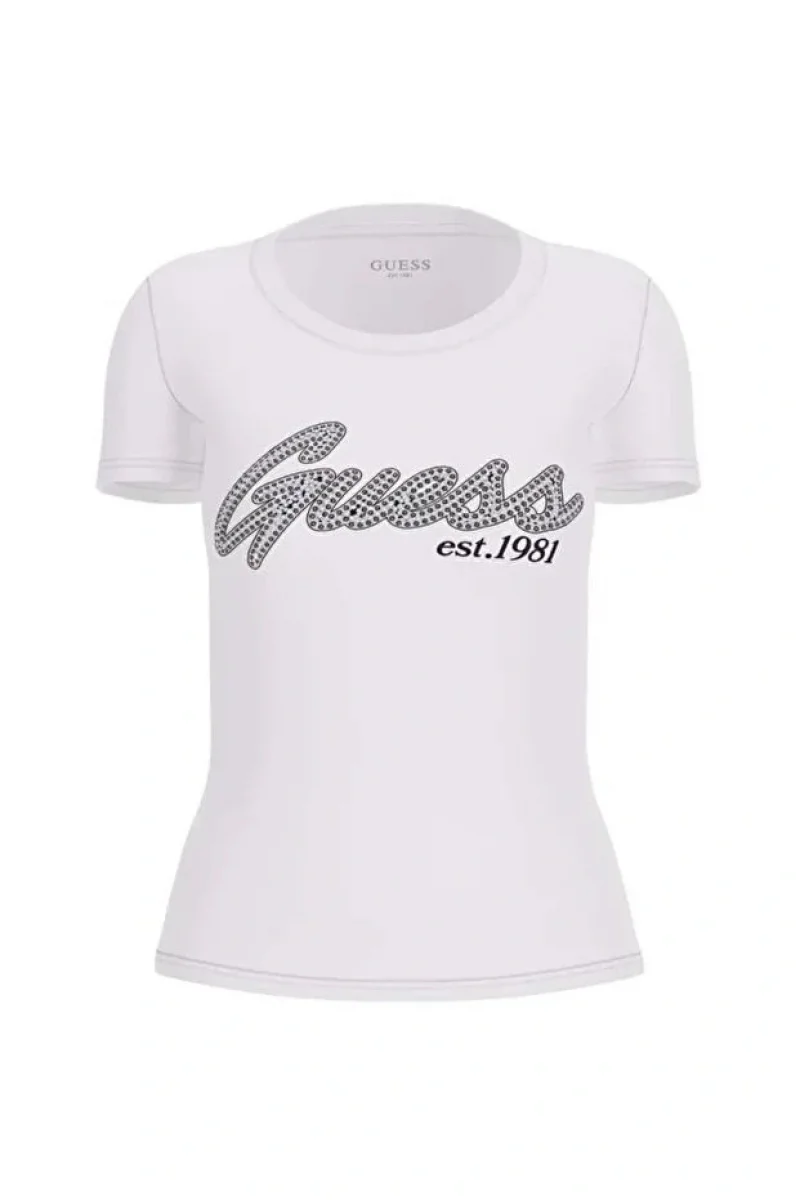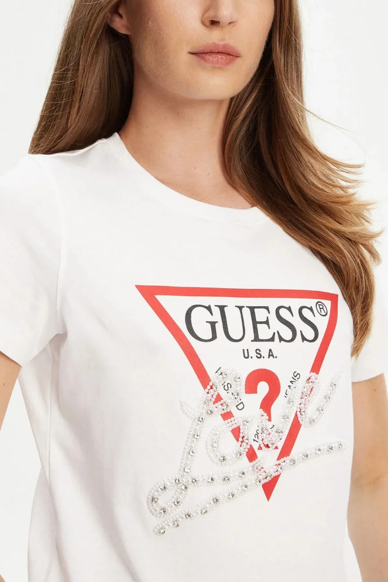 Guess Pearls Kadın Beyaz Regular Fit T-Shirt W5YI40I3Z14-G011