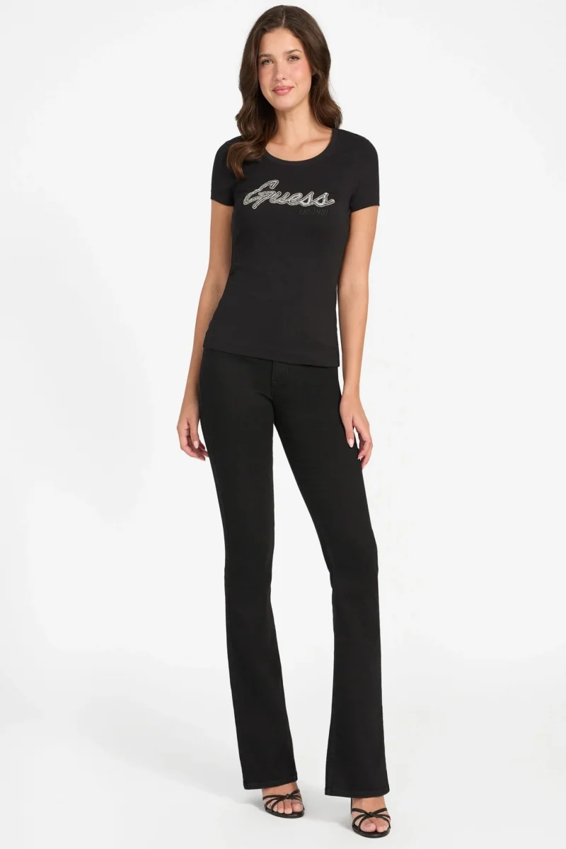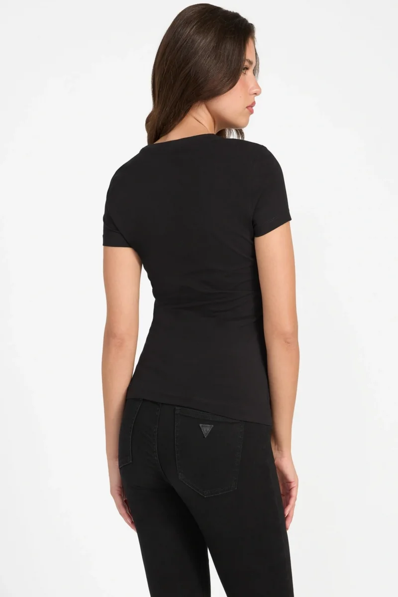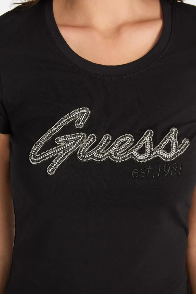 Guess Pearls Kadın Siyah Regular Fit T-Shirt W5YI40I3Z14-JBLK