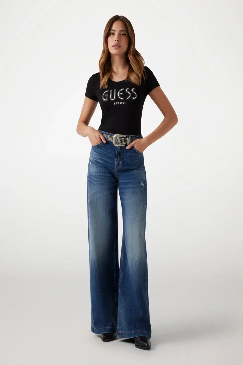 Guess Jersey Kadın Siyah Slim Fit T-Shirt W5YI05J1314-JBLK