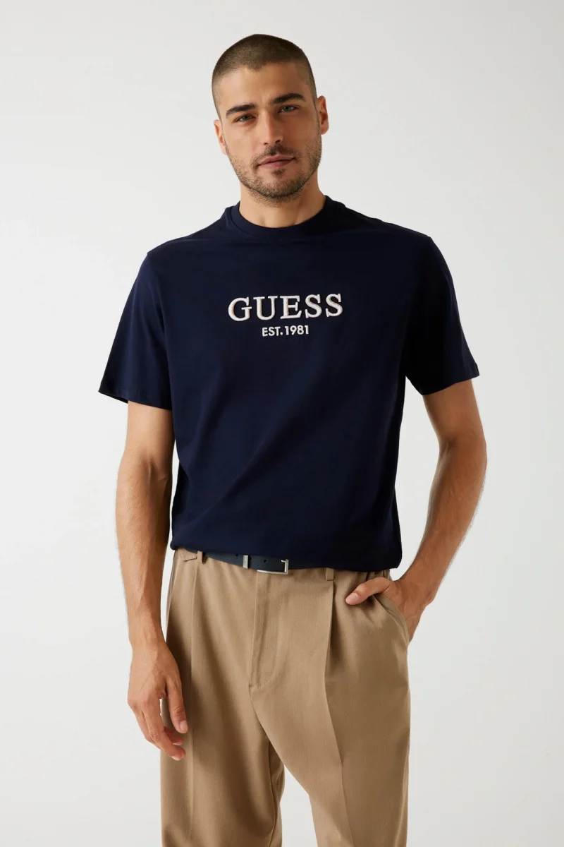 Guess Embroidery Erkek Lacivert Regular Fit T-Shirt M5BI09K8FQ4-G7V2
