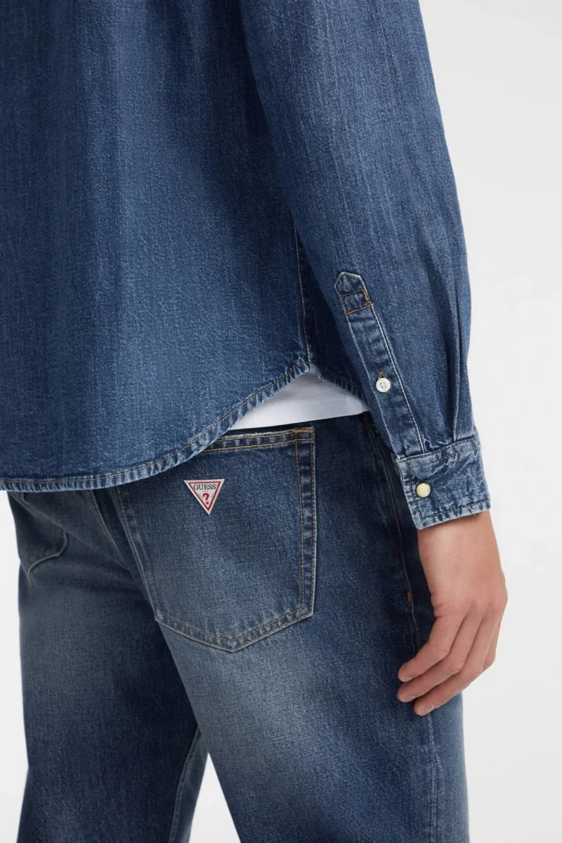 Guess Erkek Mavi Slim Fit Denim Gömlek M4YH55D5EI1-GJRW