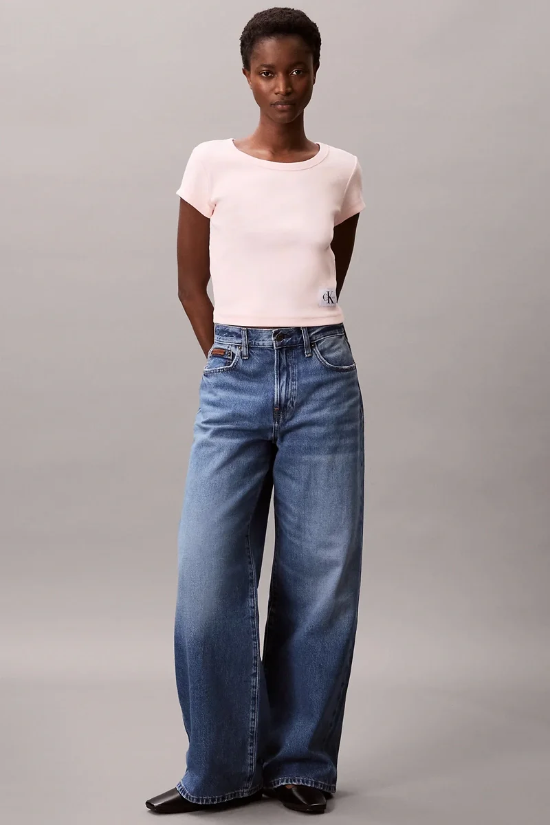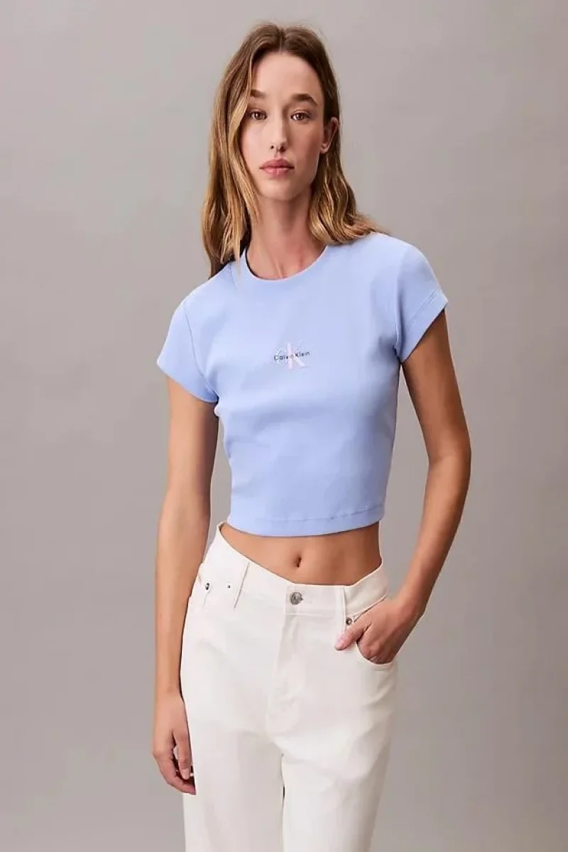 Calvin Klein Rib Kadın Mavi T-shirt LV047AB802-7ZQ