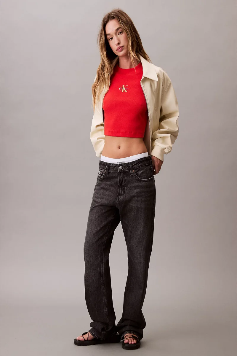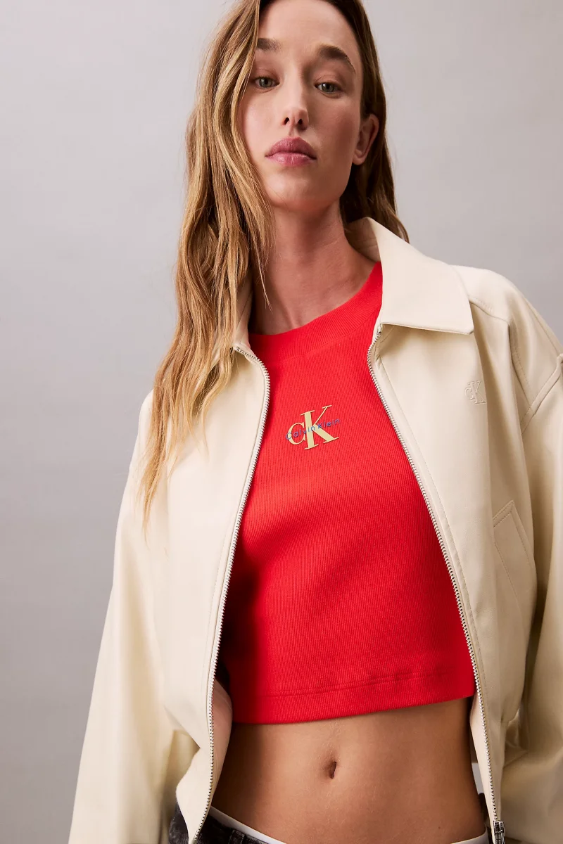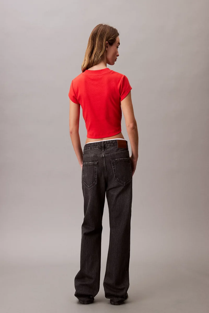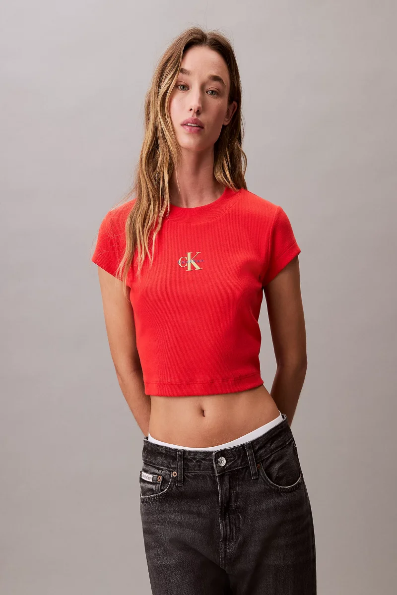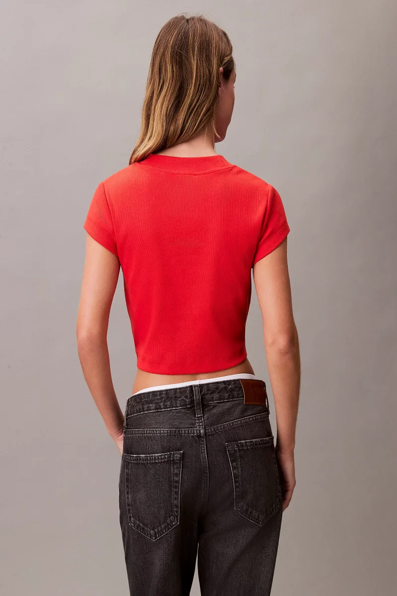 Calvin Klein Rib Kadın Kırmızı T-shirt LV047AB802-TNC