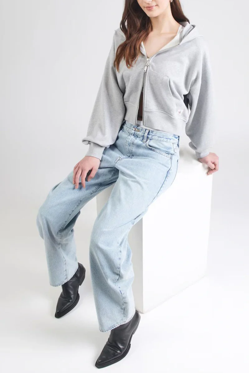 Calvin Klein A- FRENCH TERRY BADGE LOGO FZ HO Kadın Gri Sweatshirt LV047C216G-P79