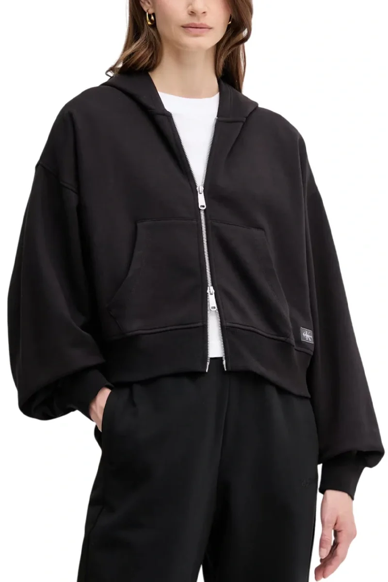 Calvin Klein A- FRENCH TERRY BADGE LOGO FZ HO Kadın Siyah Sweatshirt LV047C216G-UB1