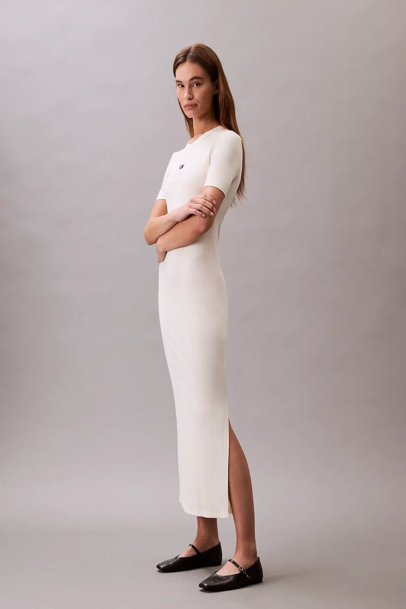 Calvin Klein A - MODAL RIB SS DRESS Kadın Beyaz Elbise LV044C902G-PBA