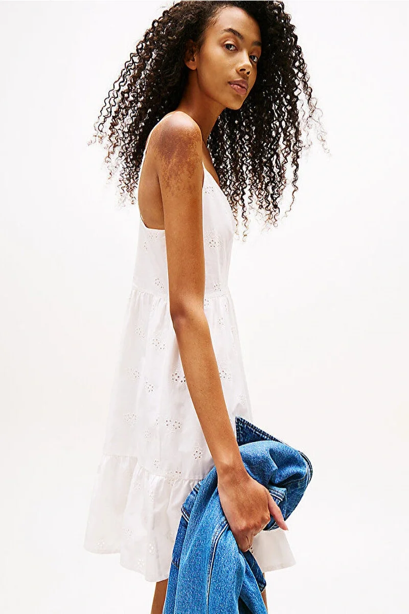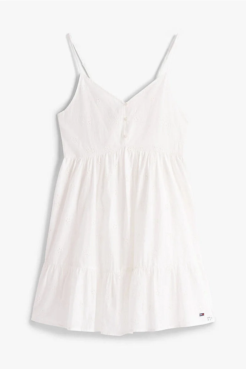 Tommy Hilfiger TJW BRODERIE ANGLAISE DRESS Kadın Beyaz Elbise DW0DW21165YBL