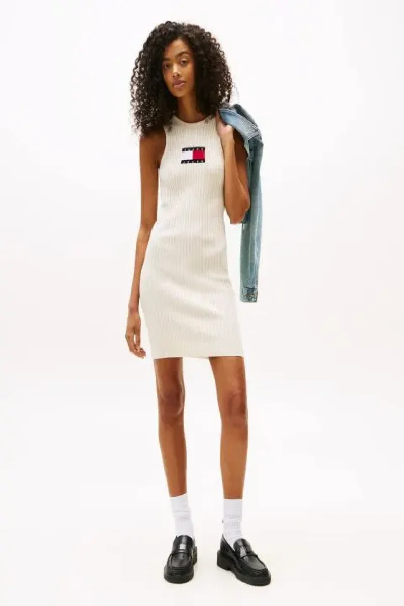 Tommy Hilfiger TJW FLAG SWEATER MINI DRESS EXT Kadın Beyaz Elbise DW0DW20877YBL