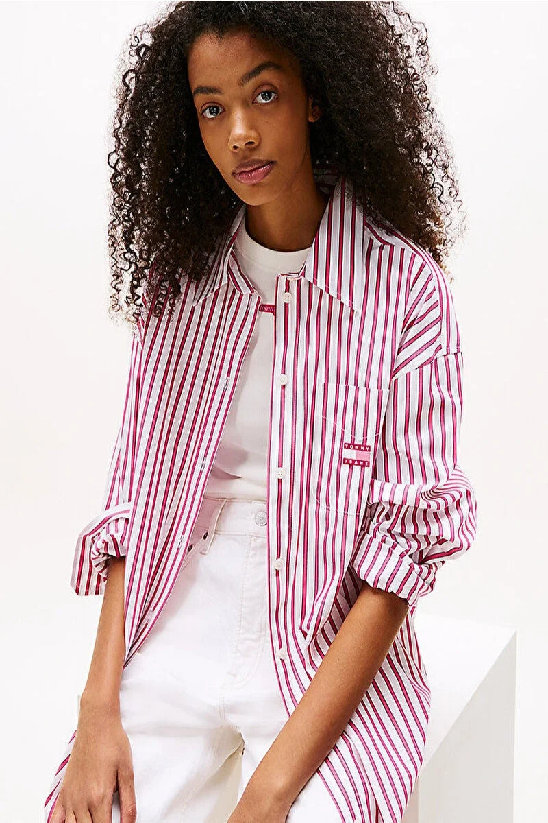Tommy Hilfiger TJW OVS MINI SHIRT DRESS EXT Kadın Pembe Elbise DW0DW211220D5