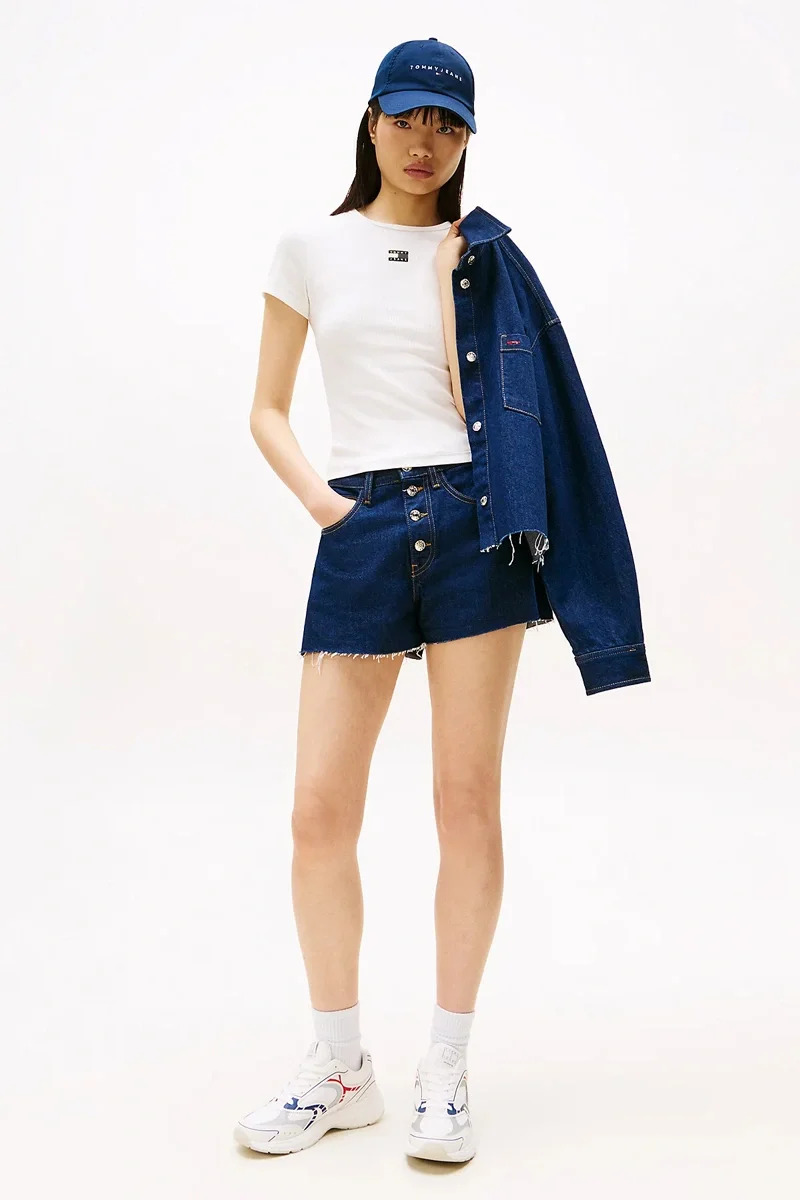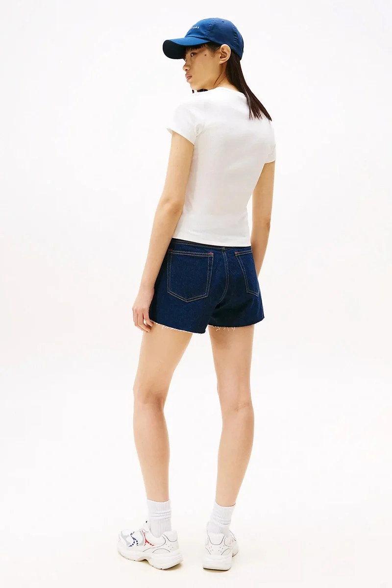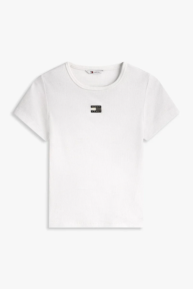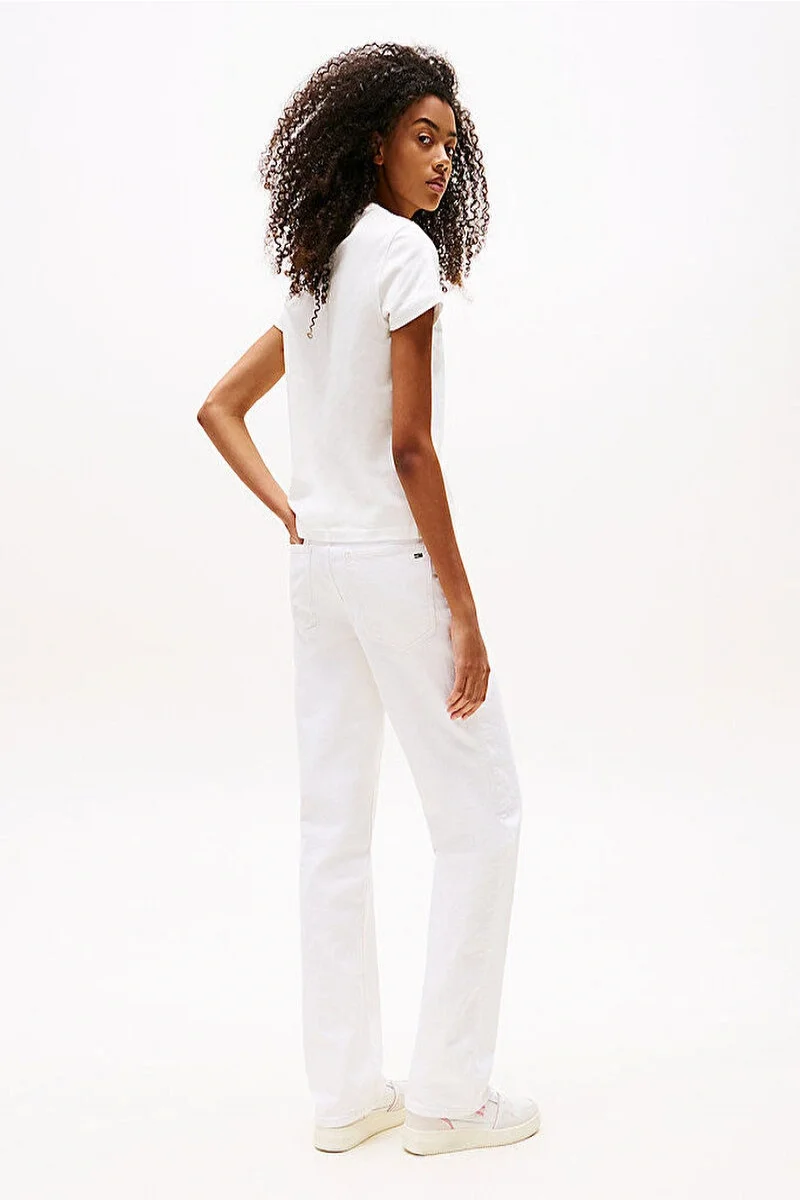 Tommy Hilfiger TJW SLIM BADGE RIB TEE Kadın Beyaz T-shirt DW0DW17881YBL