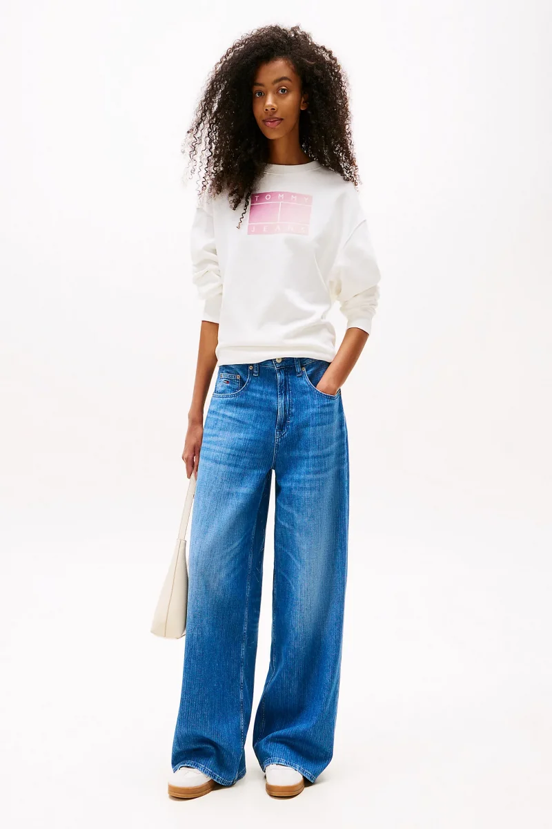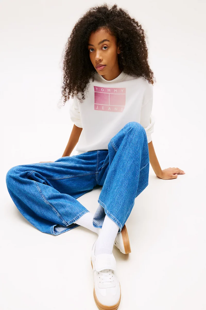 Tommy Hilfiger TJW RLX GRADIENT FLAG CREW Kadın Beyaz Sweatshirt DW0DW21396YBL