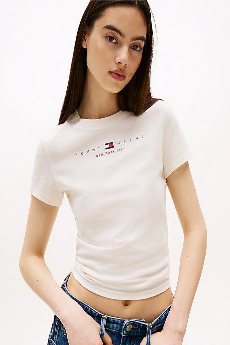 Tommy Hilfiger TJW SLIM TJ US LINEAR SS TEE Kadın Beyaz T-shirt DW0DW21422YBH