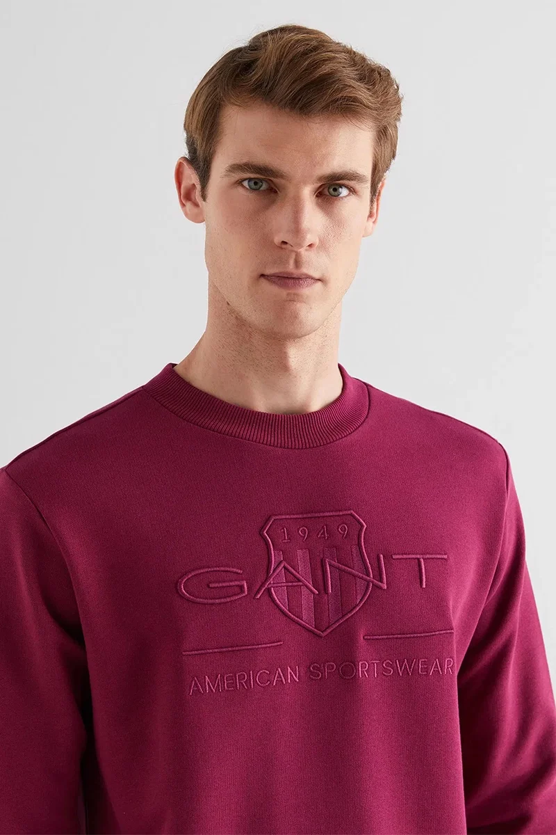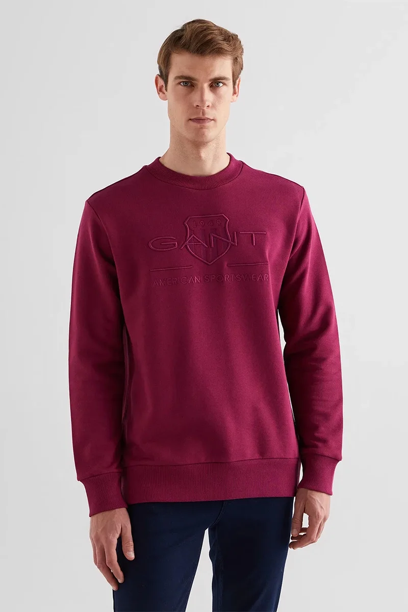 Gant Erkek Bordo Regular Fit Bisiklet Yaka Logolu Sweatshirt