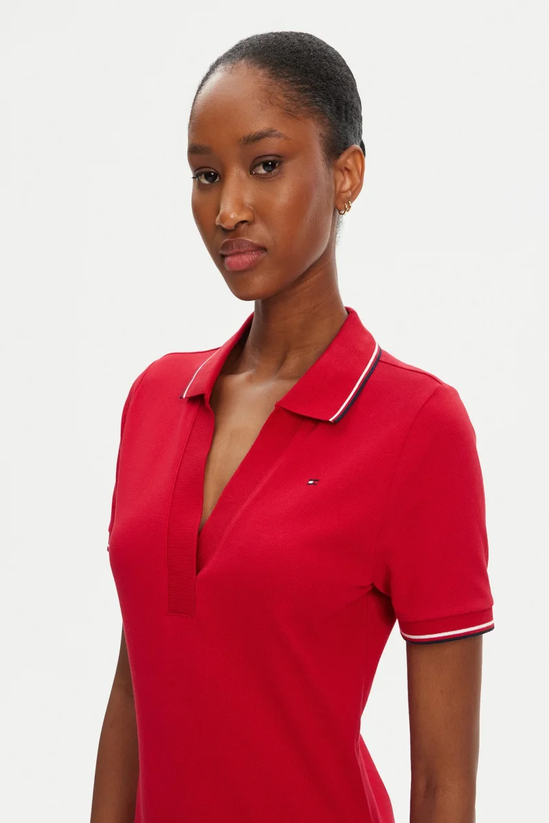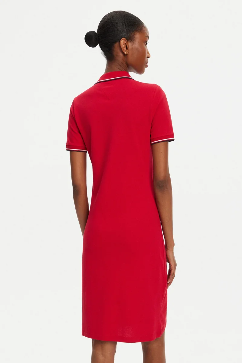 Tommy Hilfiger Kadın 1985 İkonik Şerit Detaylı Dar Kesim Polo Kırmızı Elbise WW0WW45740XLD