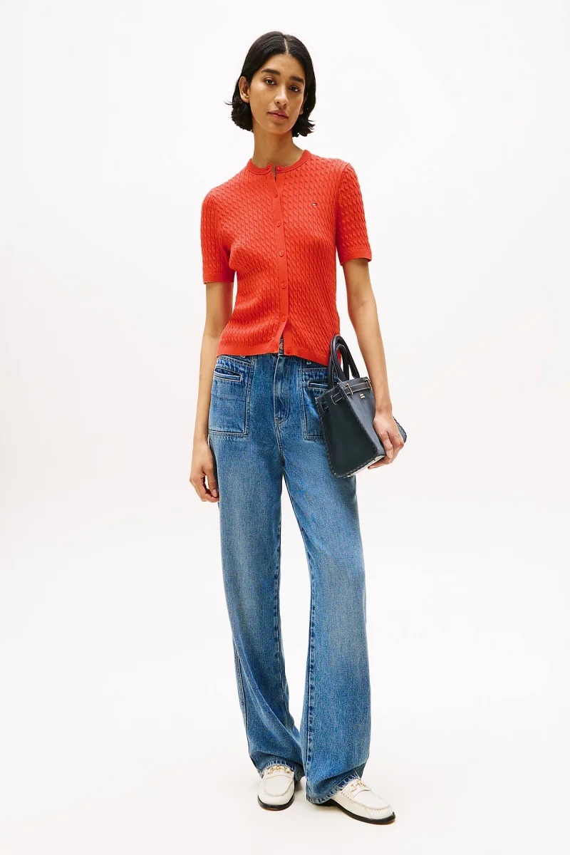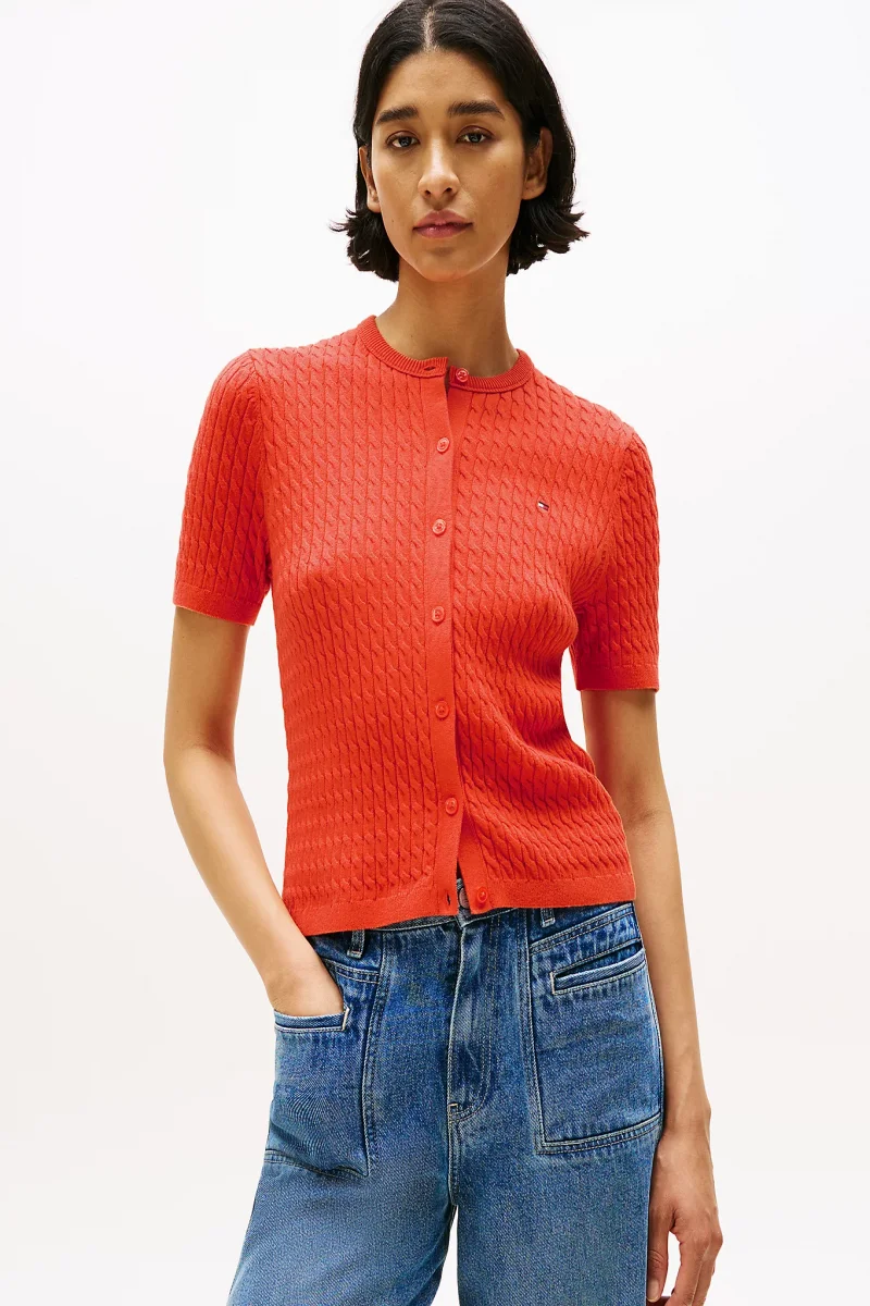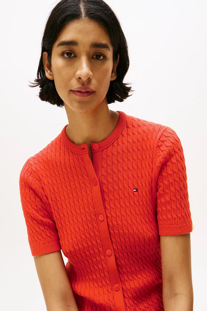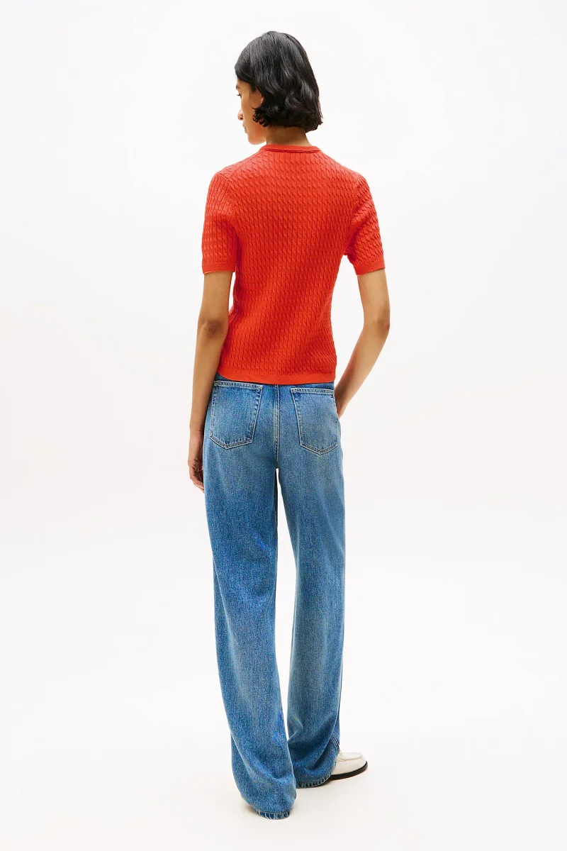 Tommy Hilfiger Kadın Pamuklu İnce Örgü Kısa Kollu Bisiklet Yaka Turuncu Kazak WW0WW45707SCX