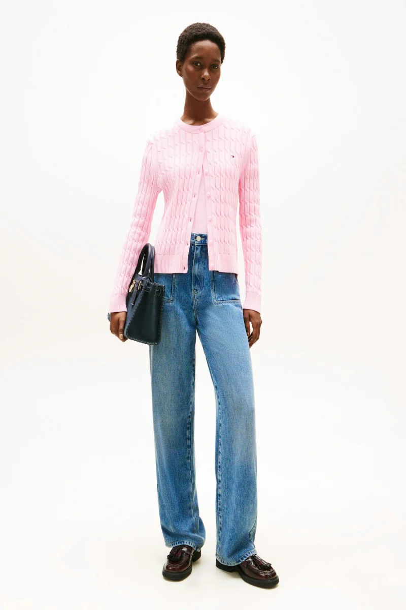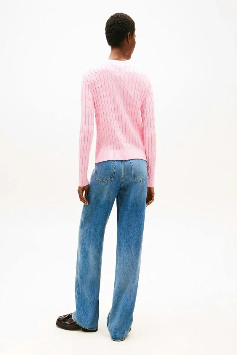 Tommy Hilfiger Kadın Pamuklu Orta Kalınlıkta Örgü Bisiklet Yaka Pembe Kazak WW0WW46514TOL