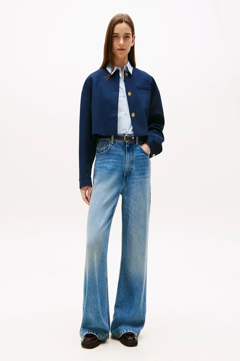 Tommy Hilfiger Kadın Punto Kumaş Kısa Mavi Blazer Ceket WW0WW46519C1G