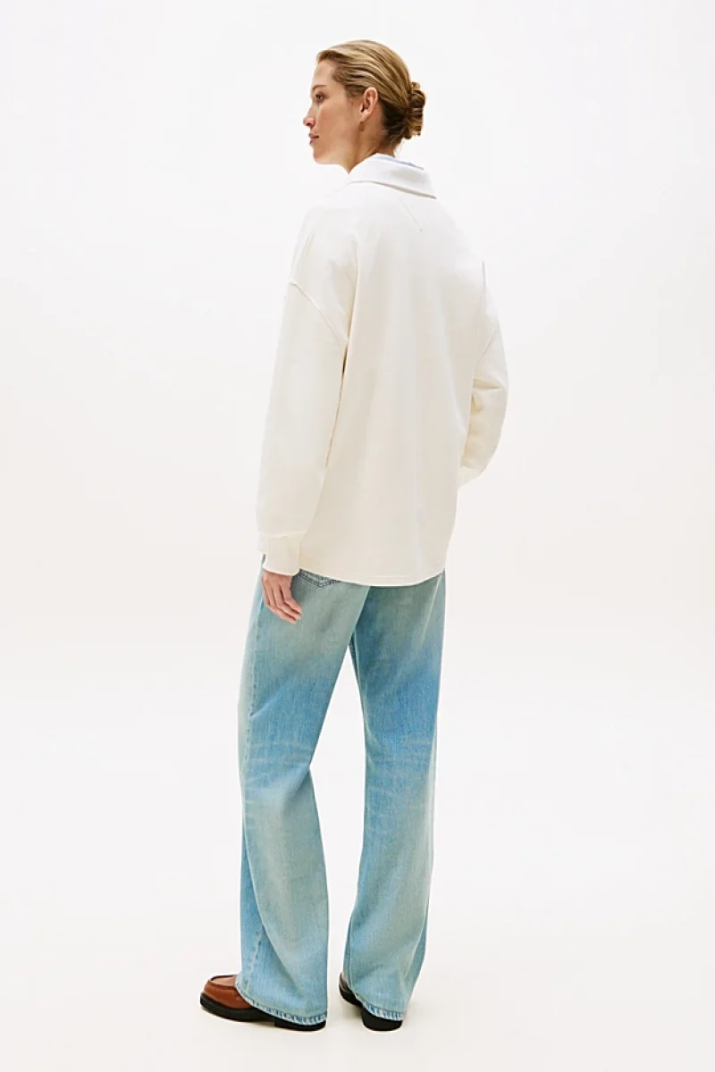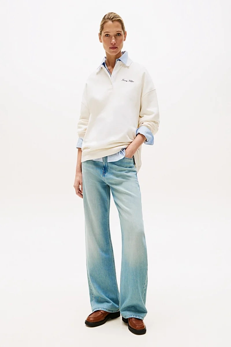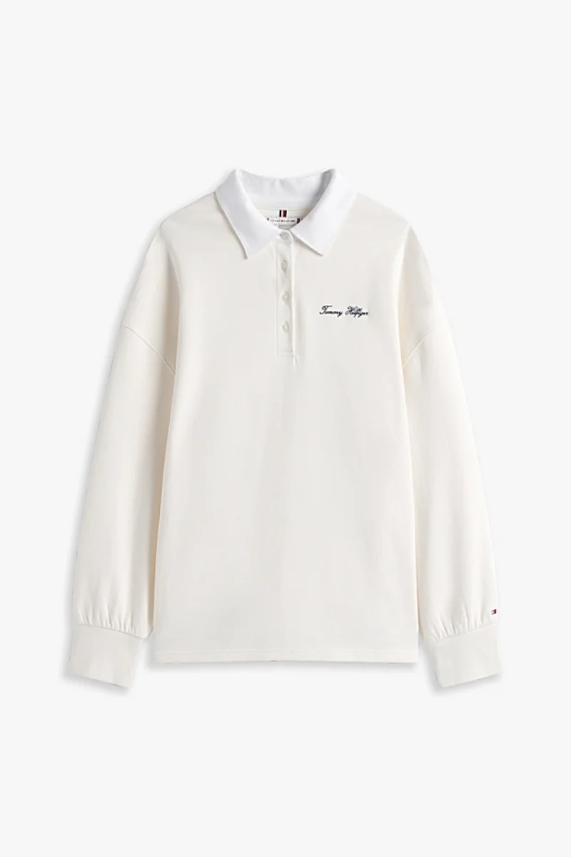 Tommy Hilfiger Kadın Yazı Baskılı Pike Rugby Beyaz Sweatshirt WW0WW45779YA8