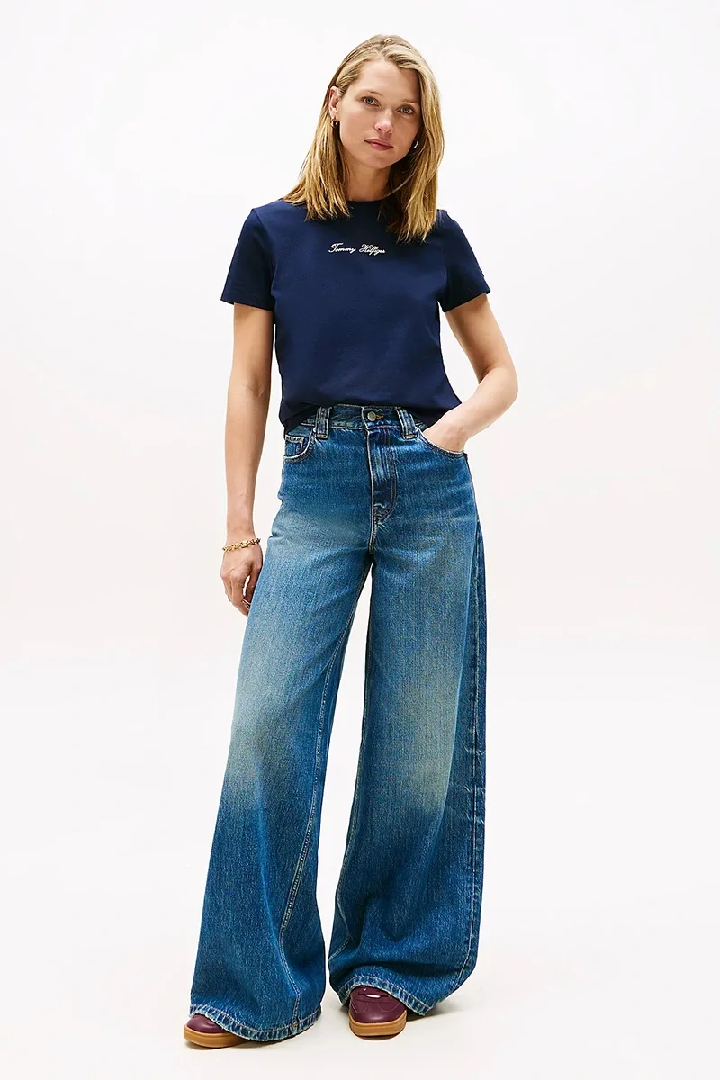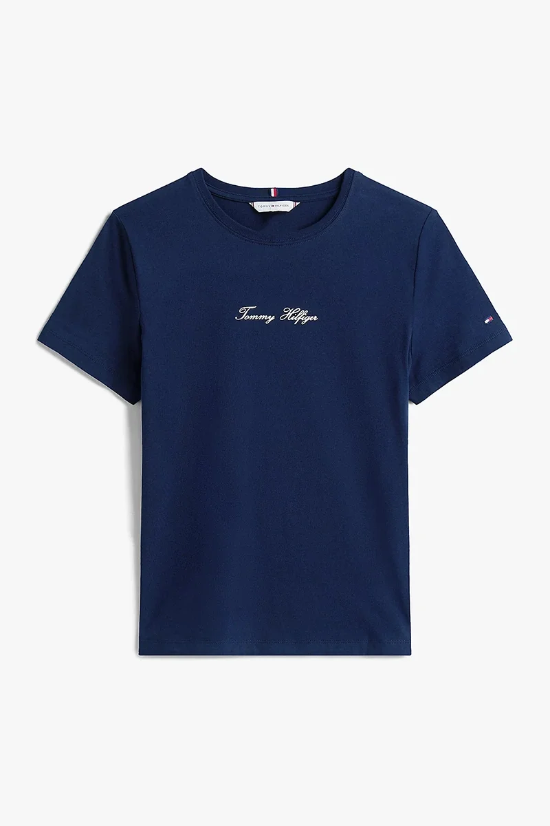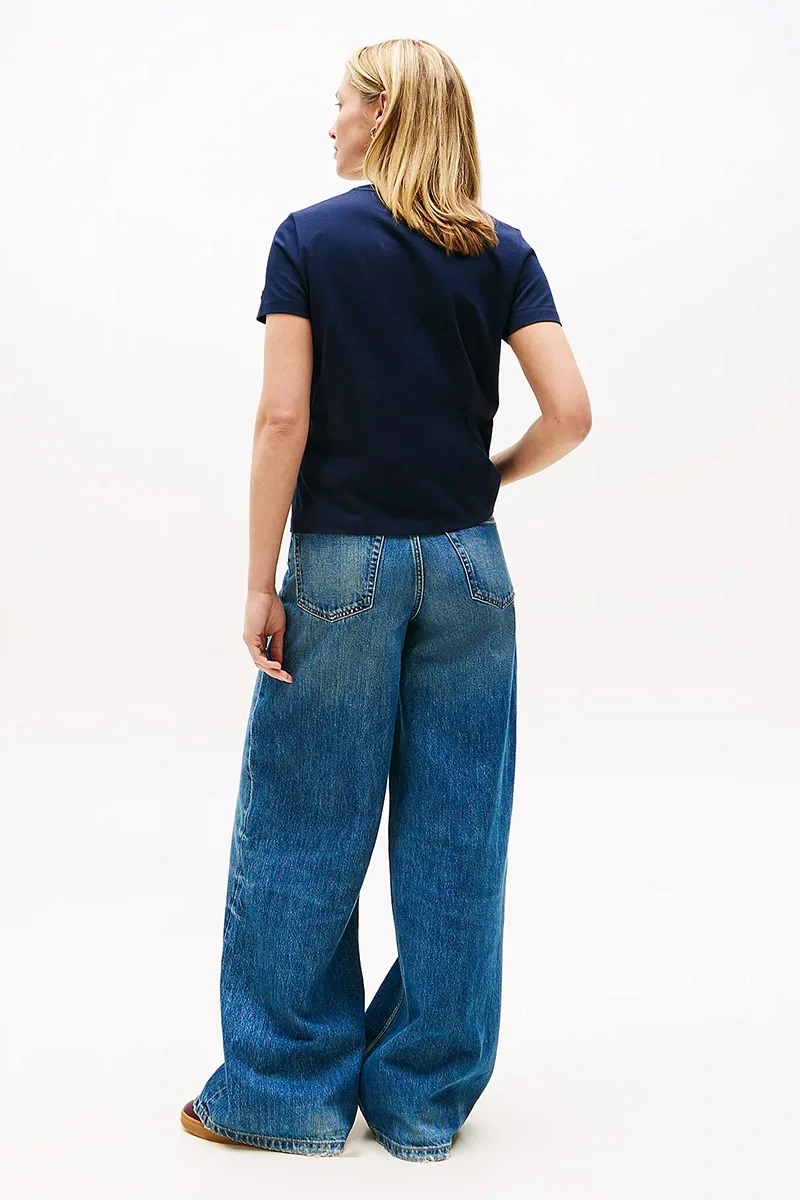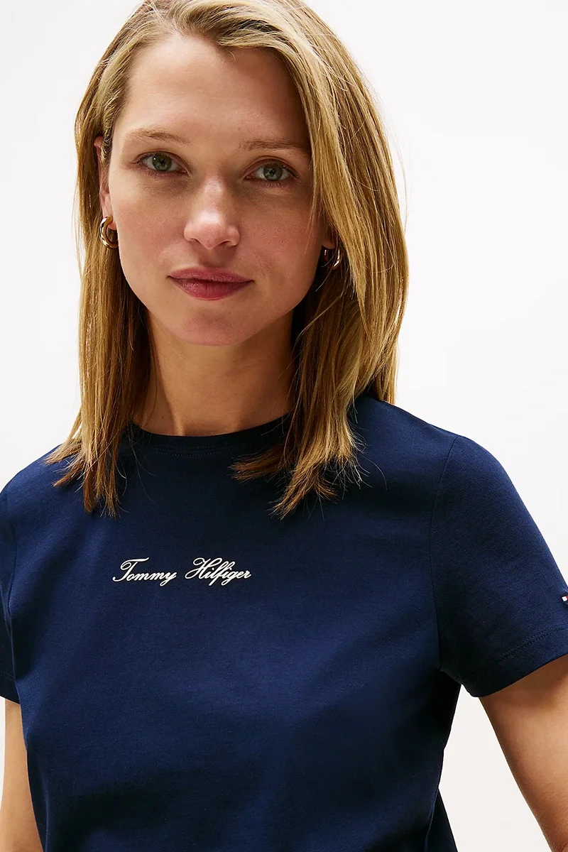 Tommy Hilfiger Klasik Yazı Baskılı Normal Kesim Kısa Kollu Kadın Mavi T-shirt WW0WW47460C1G