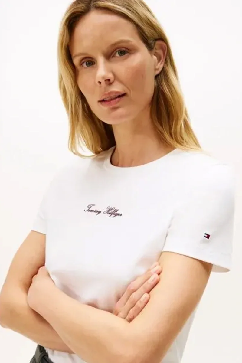 Tommy Hilfiger Klasik Yazı Baskılı Normal Kesim Kısa Kollu Kadın Beyaz T-shirt WW0WW47460YBL