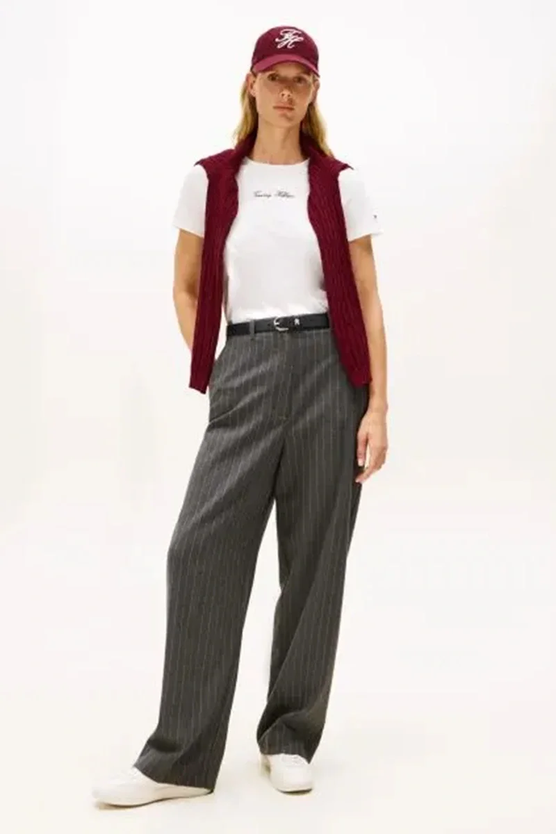Tommy Hilfiger Kadın Yazı Baskılı Düz Paça Pike Beyaz Eşofman Altı WW0WW45744YA8