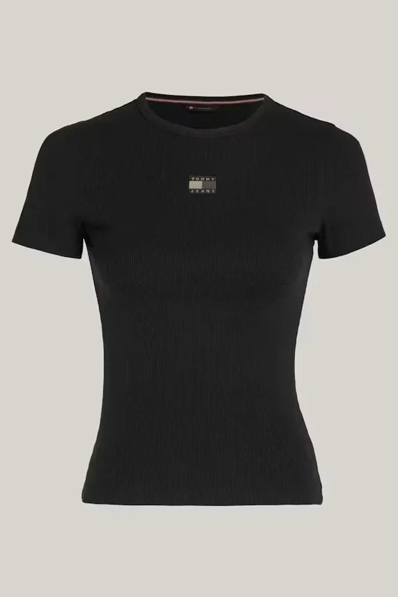 Tommy Hilfiger Kadın Slim Badge Siyah T-Shirt DW0DW17881BDS