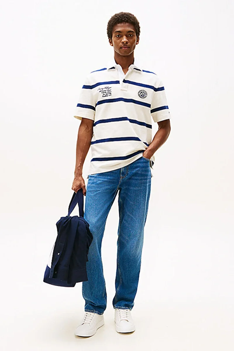 Tommy Hilfiger Erkek Kısa Kollu Klasik Kesim Rugby Mavi T-shirt MW0MW395650A4