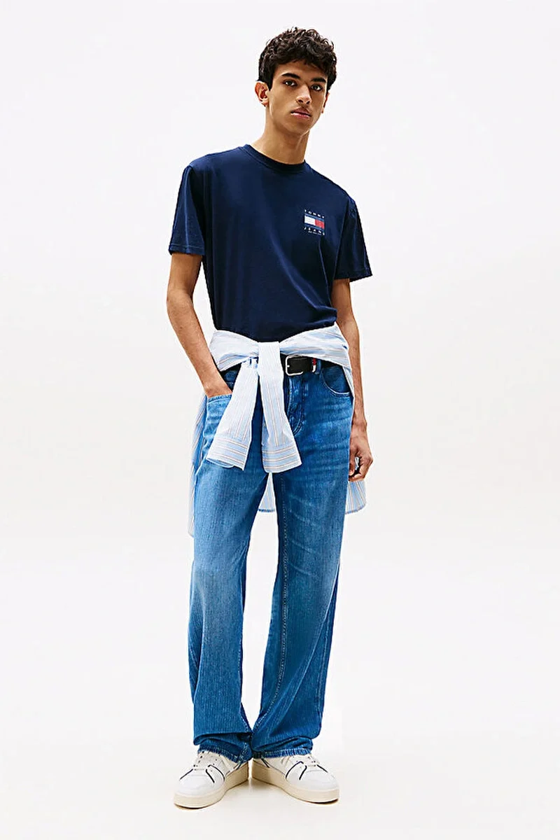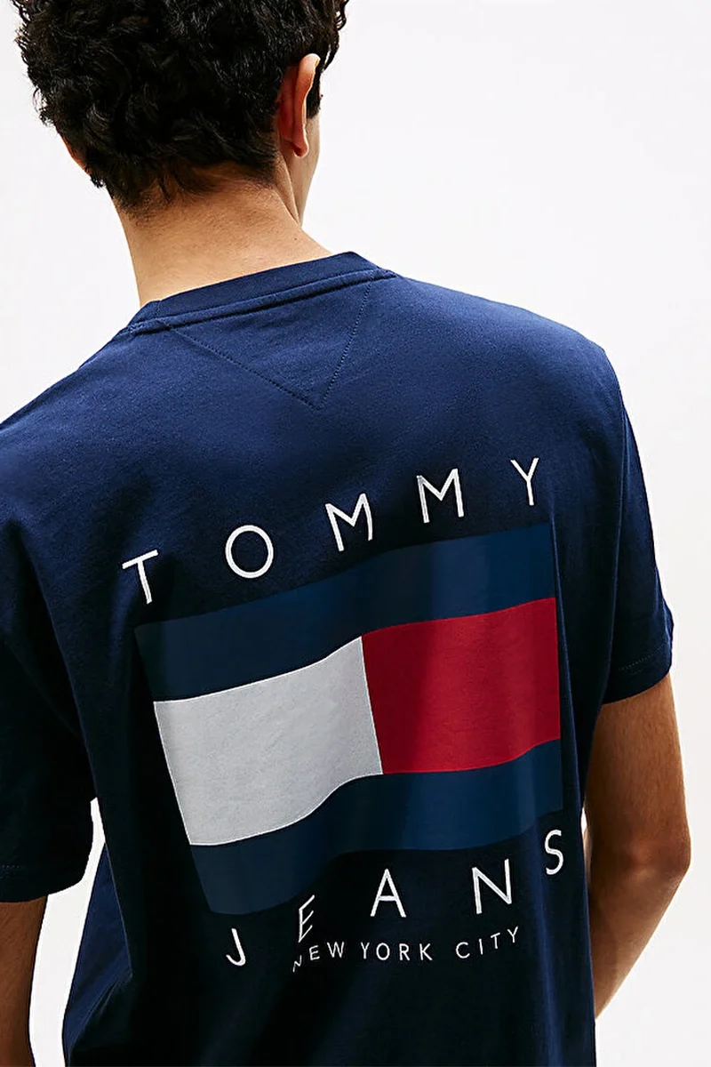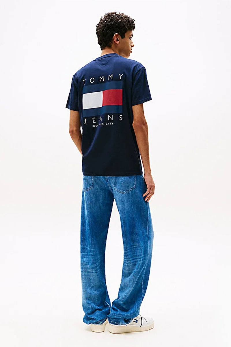 Tommy Hilfiger Erkek Sırtı Bayrak Baskılı Mavi T-shirt DM0DM21910C1G