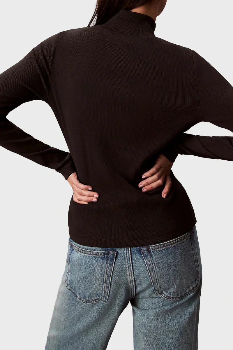 Calvin Klein Dokuma Etiketli Uzun Kollu Boğazlı Kadın Siyah Kazak LV047D203G-UB1