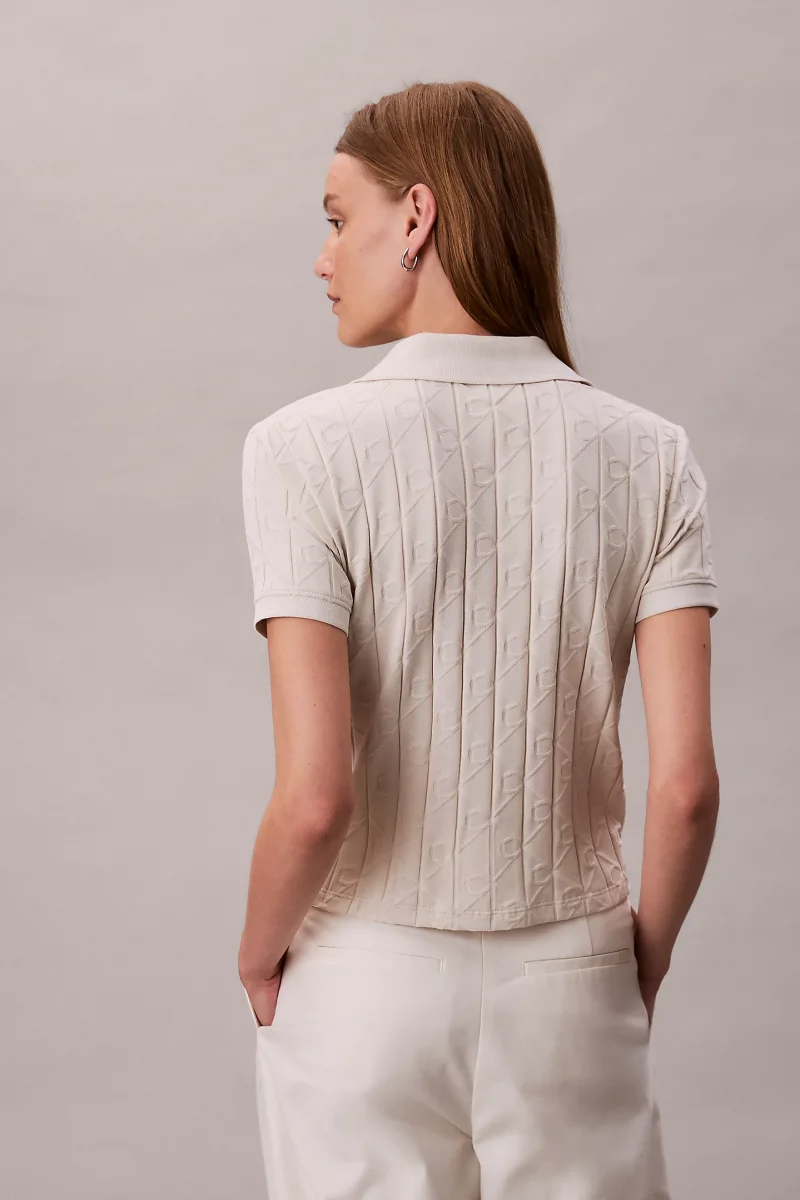 Calvin Klein Kısa Kollu Tamamı Baskılı Jakarlı Polo Kadın Beyaz T-shirt LV044D209G-67U