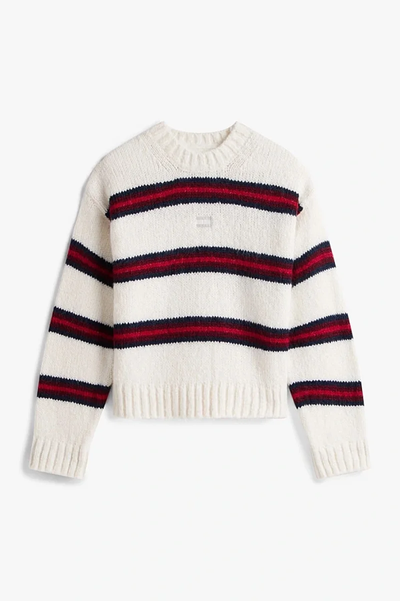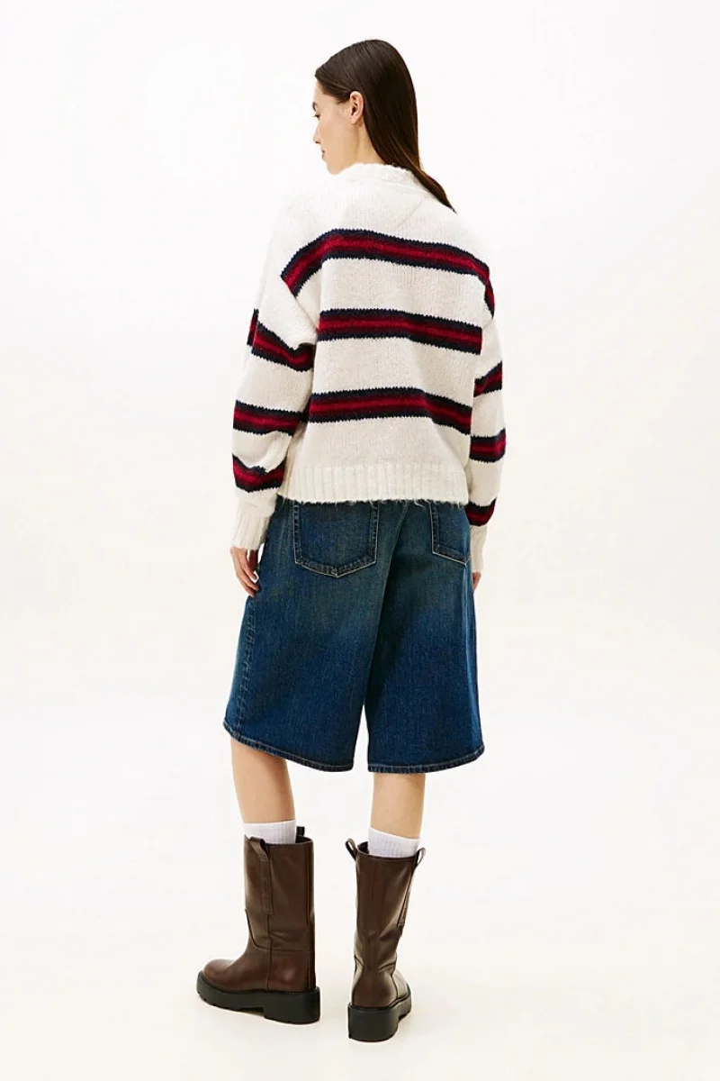 Tommy Hilfiger TJW Armalı Çizgili Yumuşak Kadın Beyaz Kazak DW0DW21679YBH