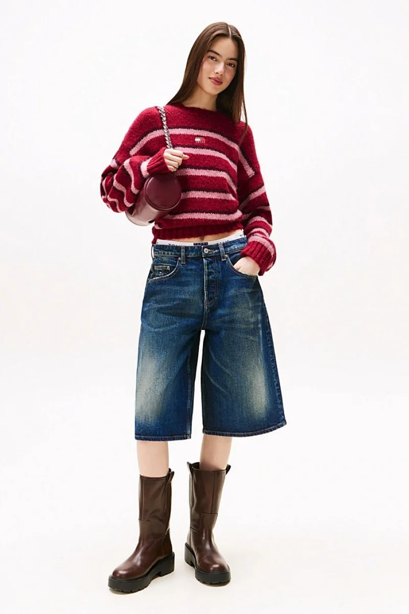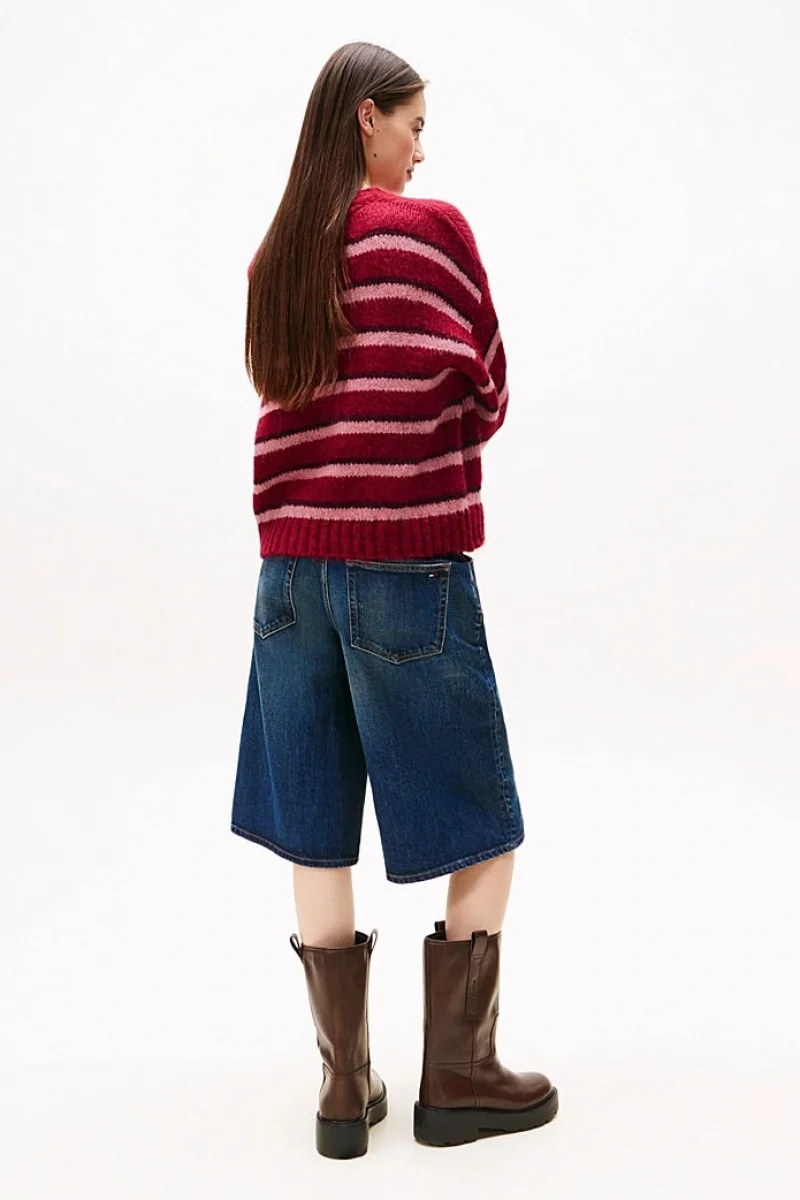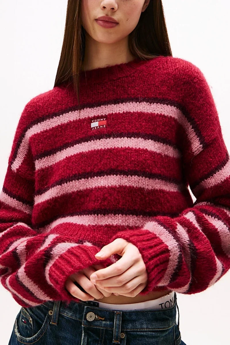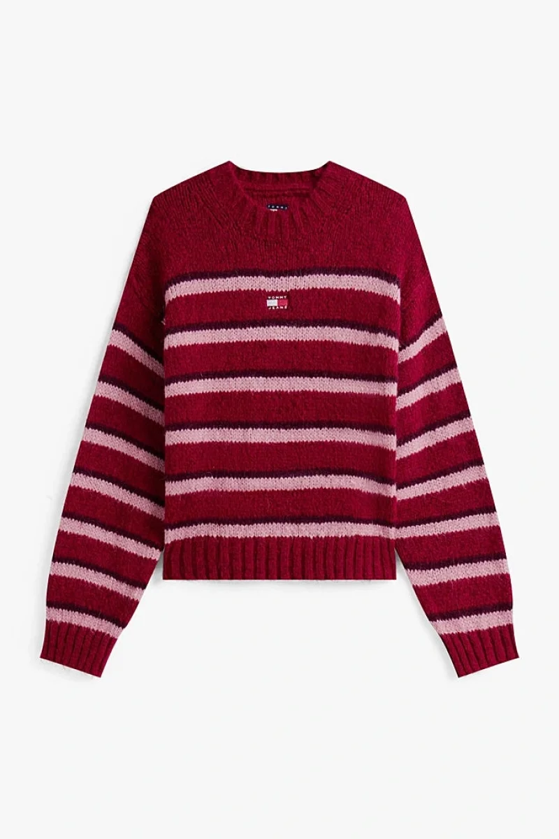 Tommy Hilfiger TJW Armalı Çizgili Yumuşak Kadın Kırmızı Kazak DW0DW21679XJP