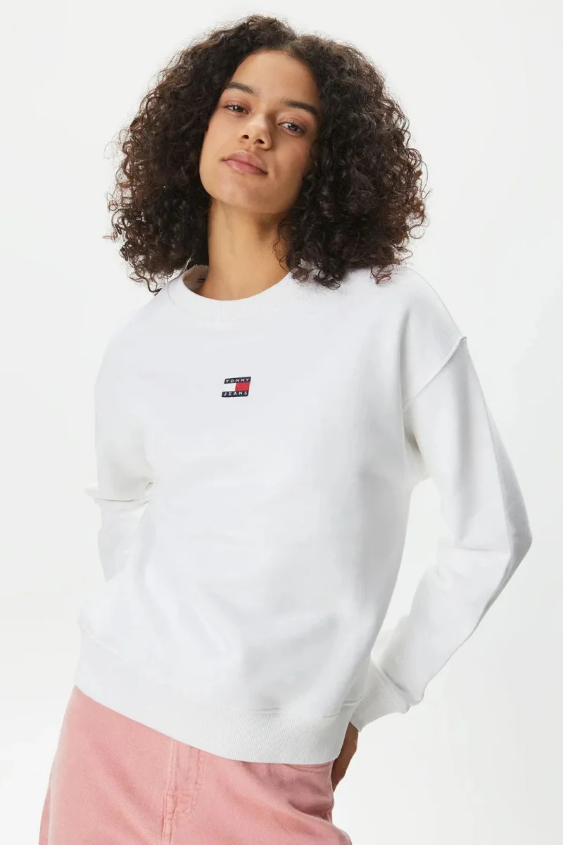 Tommy Hilfiger TJW Armalı Kutu Kesim Bisiklet Yaka Kadın Beyaz Kazak DW0DW17325YBH