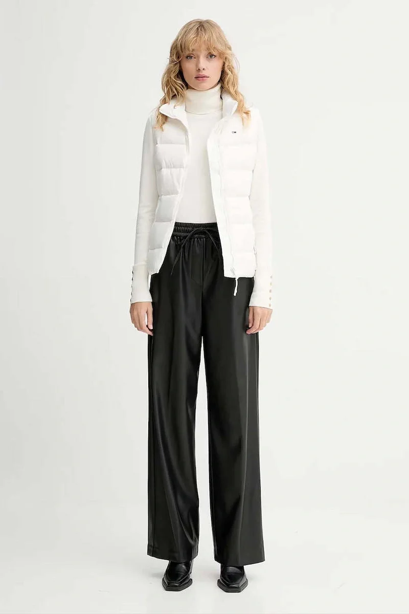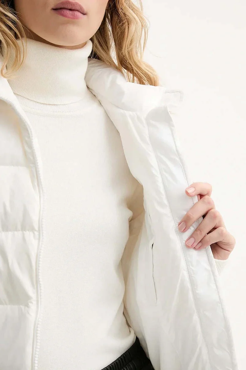 Tommy Hilfiger TJW Dar Kesim Fermuarlı Baskılı Kuş Tüyü Kadın Beyaz Yelek DW0DW21622YBL