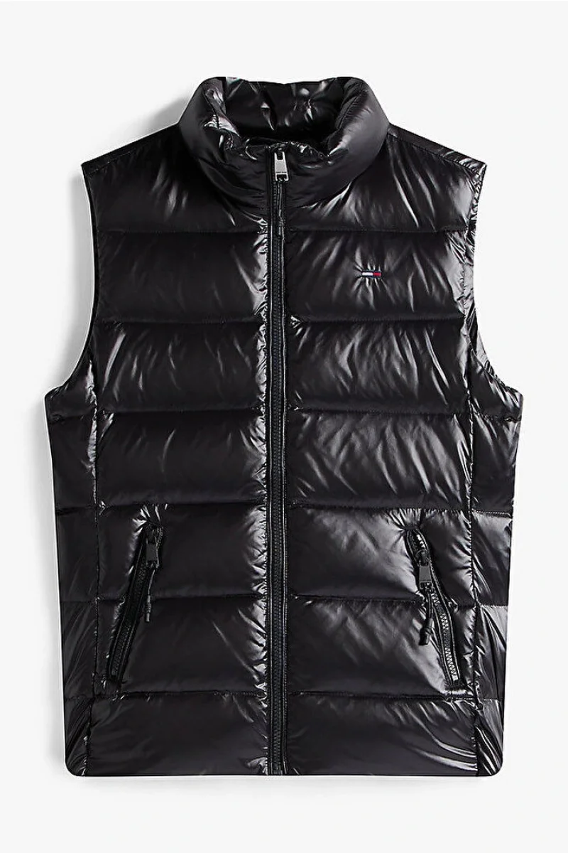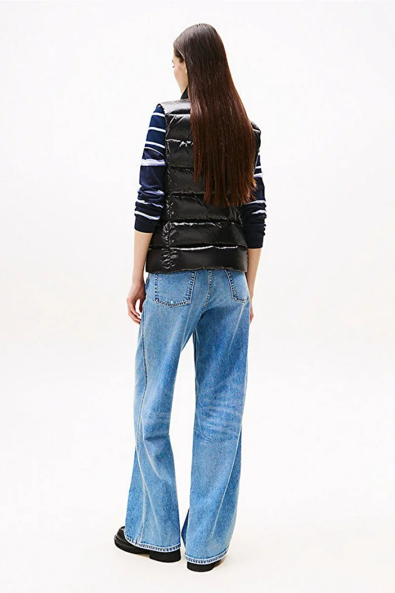 Tommy Hilfiger TJW Dar Kesim Fermuarlı Baskılı Kuş Tüyü Kadın Siyah Yelek DW0DW21622BDS