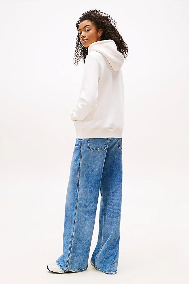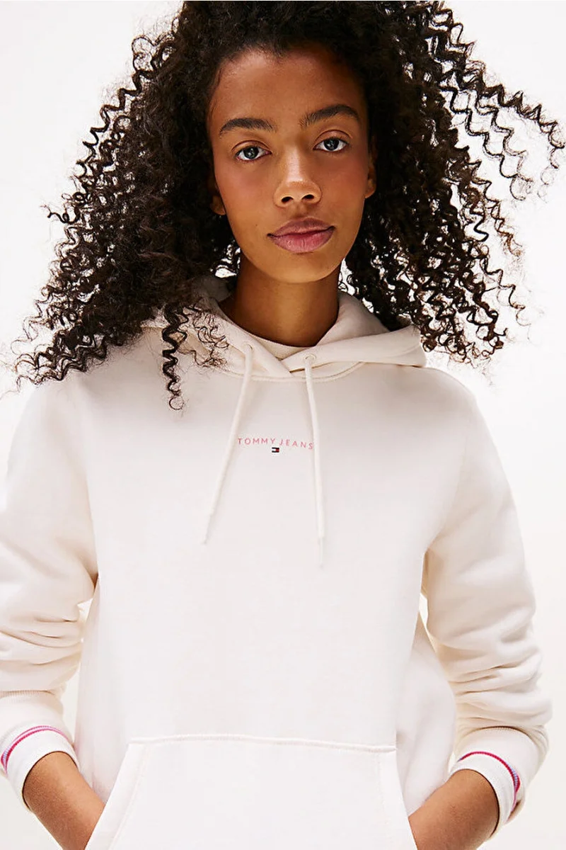 Tommy Hilfiger TJW Normal Kesim Linear Kapüşonlu Kadın Beyaz Kazak DW0DW21963YBH