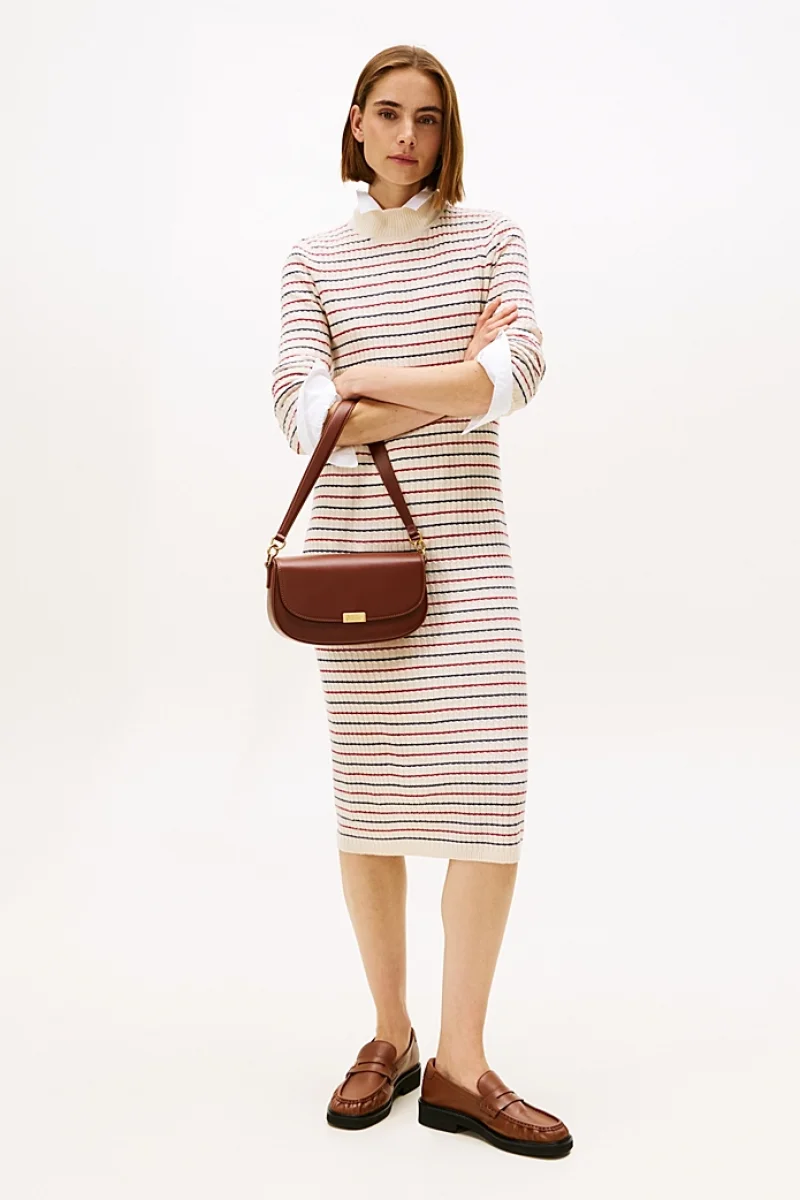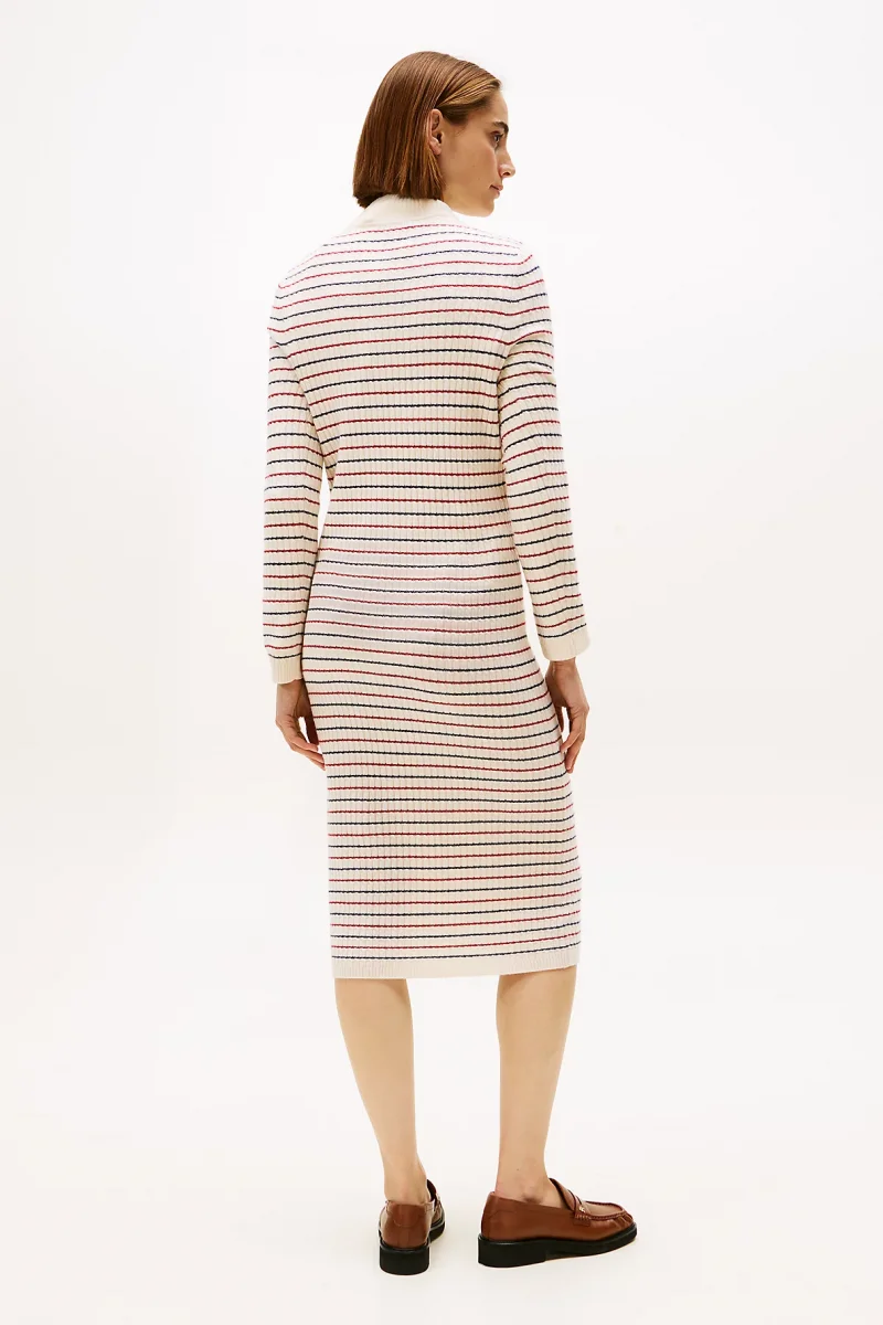 Tommy Hilfiger Yün Kaşmir Karışımlı Saç Örgülü Yarım Balıkçı Yaka Uzun Kollu Kadın Beyaz Elbise WW0WW464300FH