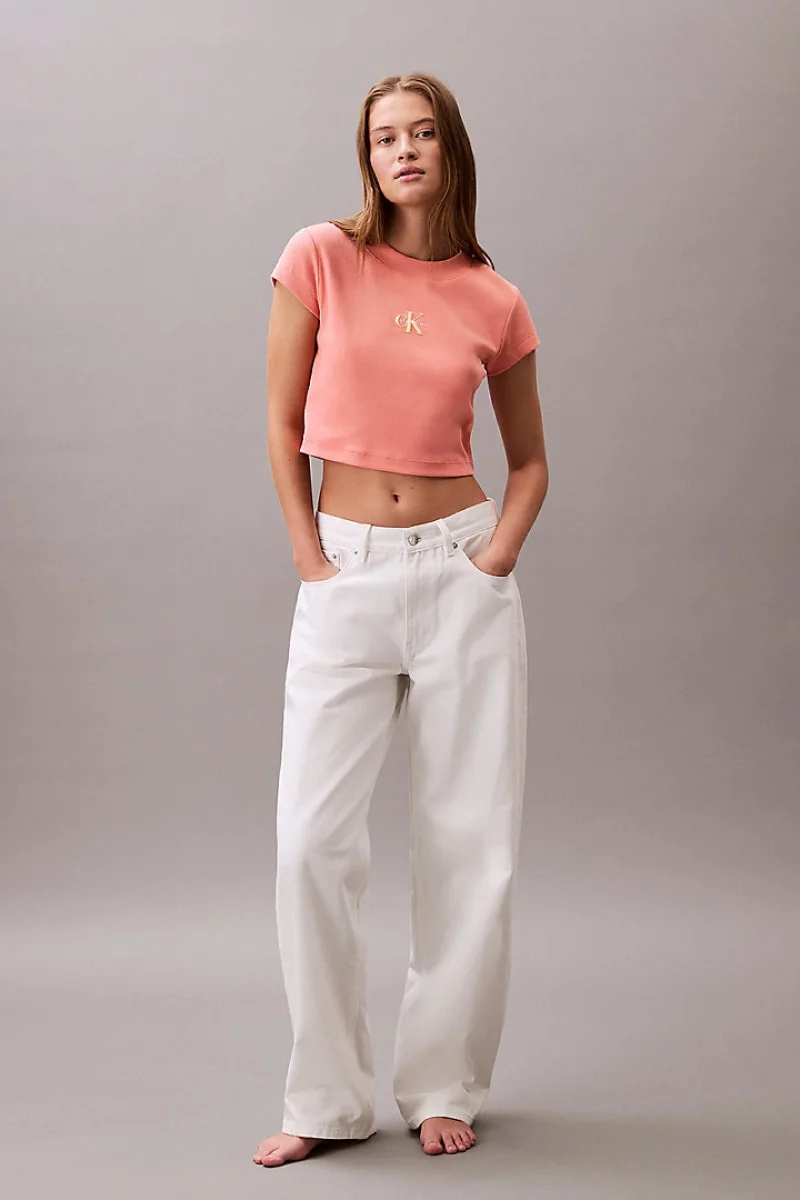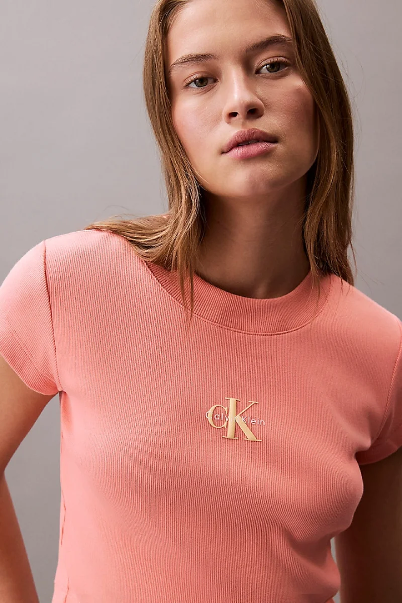 Calvin Klein MONOGRAM BABY TEE Kadın Pembe T-Shirt LV047AB802-VDW