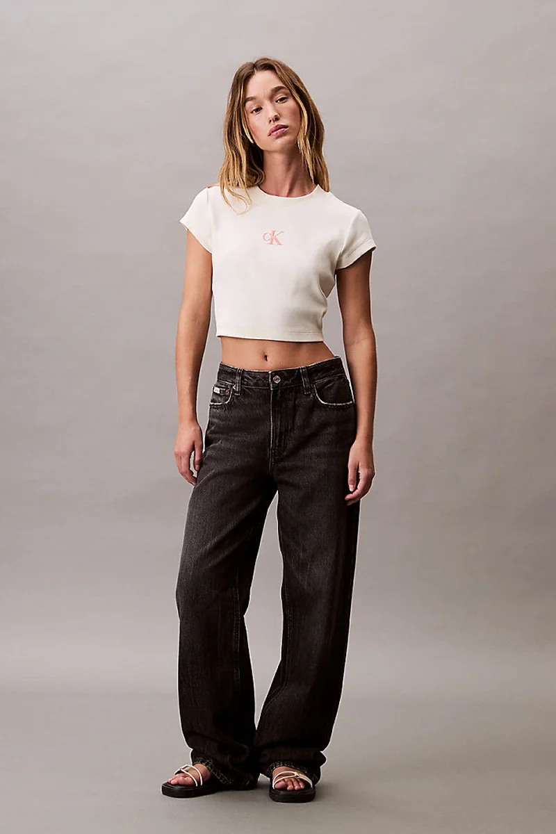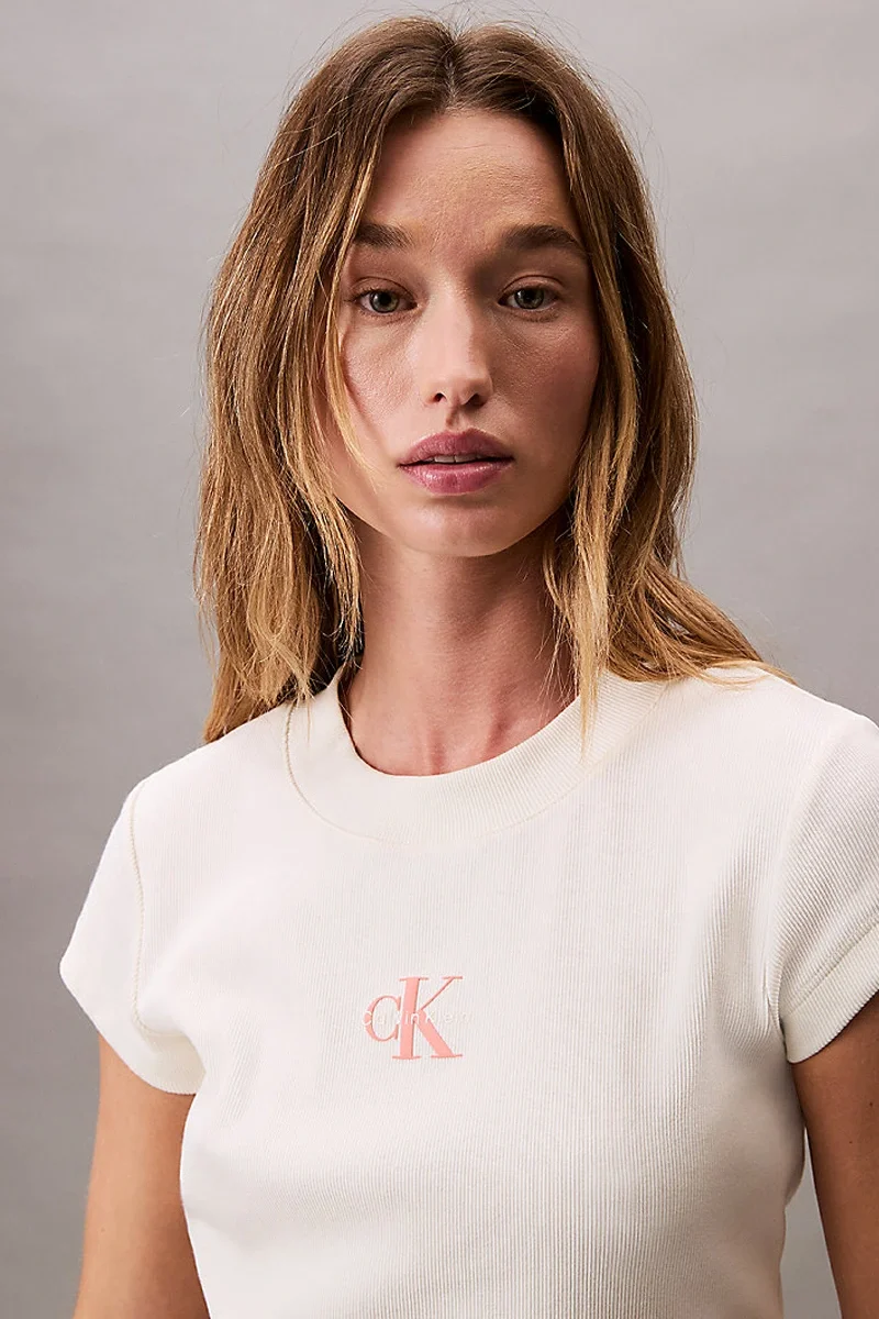 Calvin Klein A- MONOGRAM BABY TEE Kadın Beyaz T-shirt LV047AB802-YC9